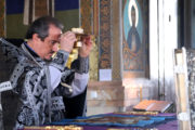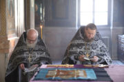 Его Высокопреосвященству сослужили митр. прот. Вадим Кейбаш, секретарь Кишиневско-Молдавской митрополии и соборное духовенство.