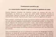 «При соучастии государства, достойном осуждения, активные проводники гомосексуализма укрепляют свои позиции и проводят широкие медийные кампании по продвижению этого великого греха. Посредством гей-парадов и публичных манифестаций сексуальных меньшинств наносится удар по хребту святейших ценностей нашего народа, который во все времена разоблачал все вредные для души позывы», — говорится в документе, опубликованном 4 сентября 2014 года на сайте Молдавской митрополии.