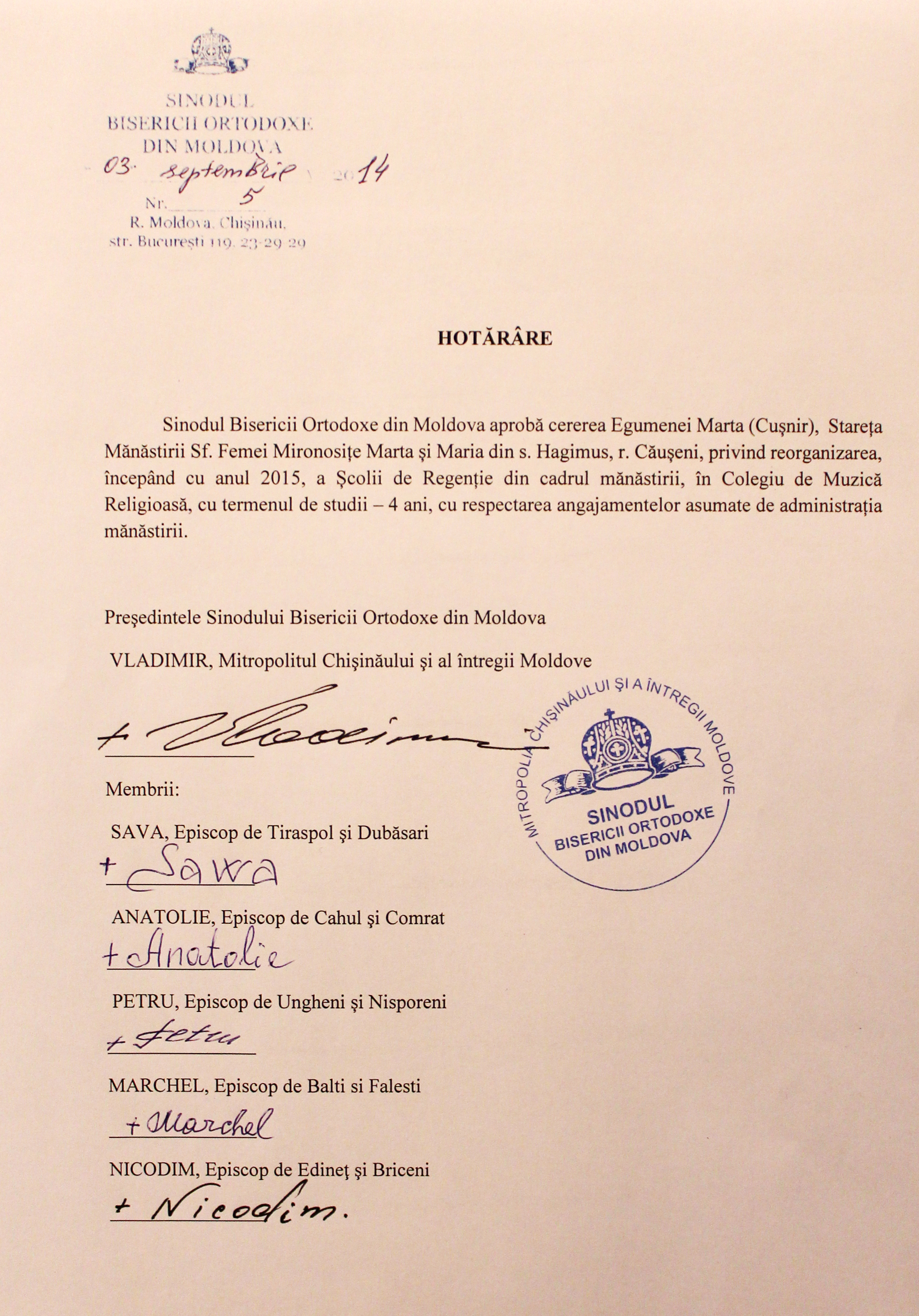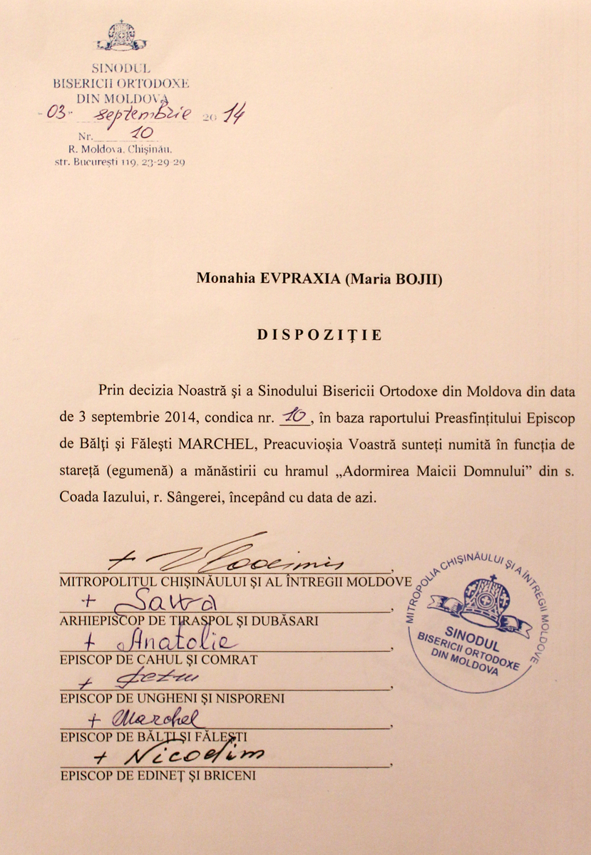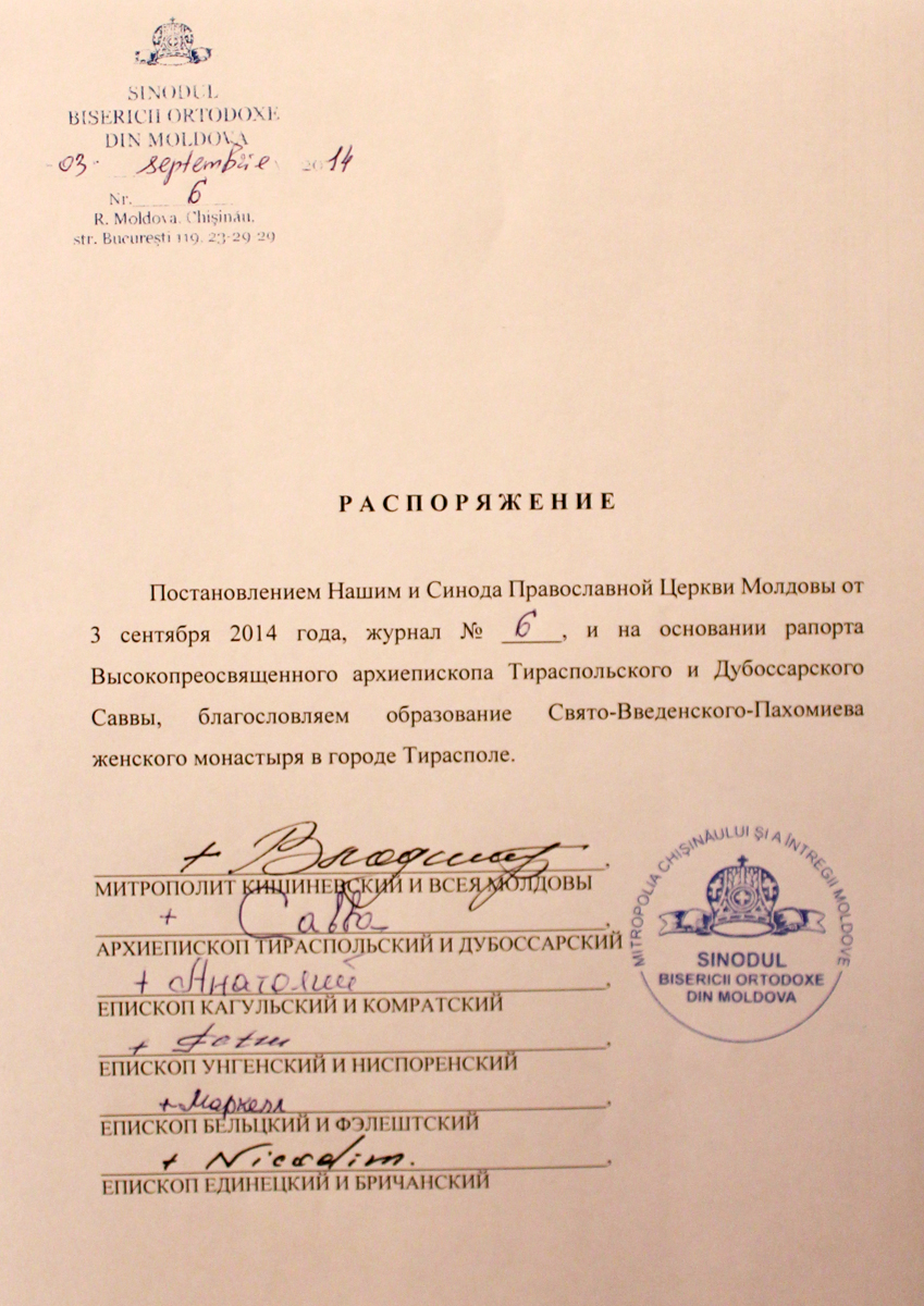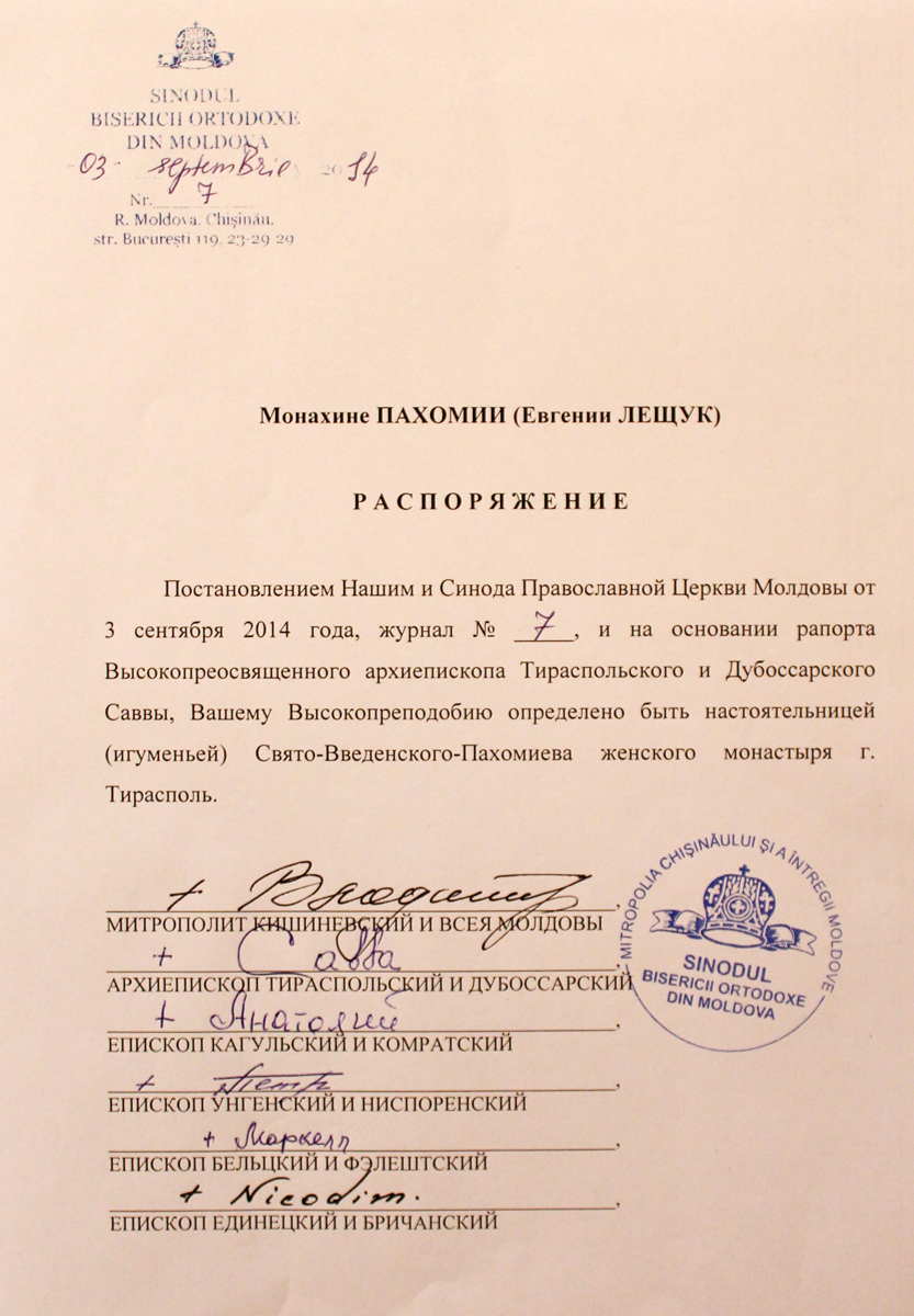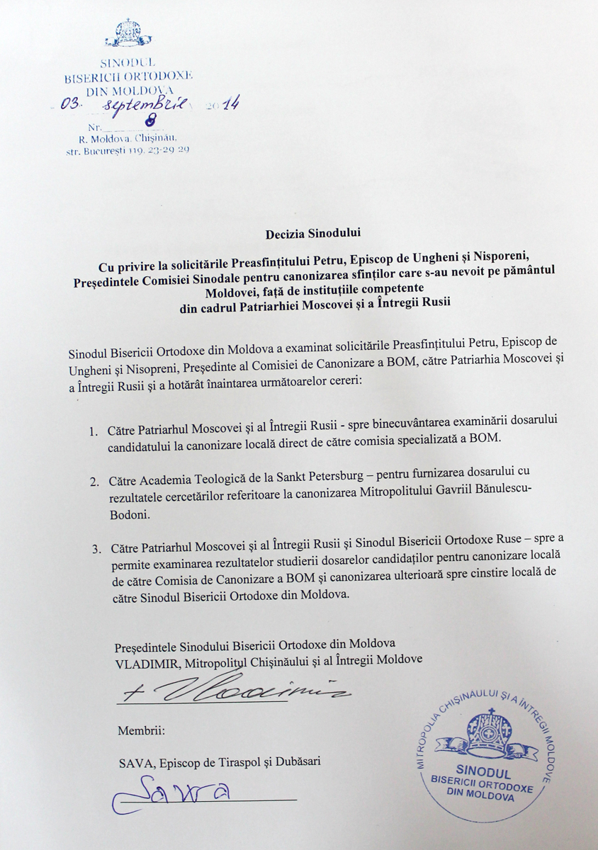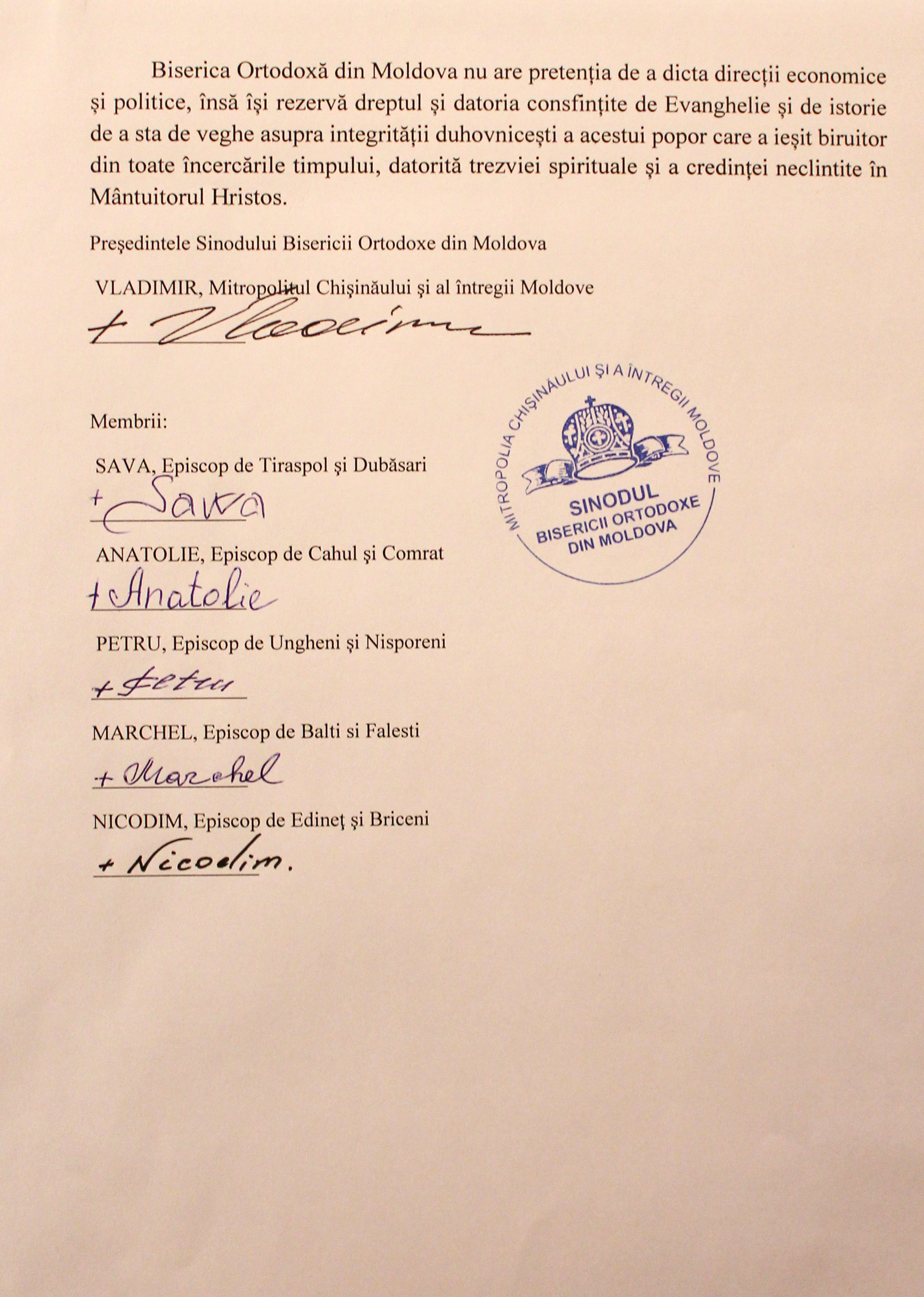 «При соучастии государства, достойном осуждения, активные проводники гомосексуализма укрепляют свои позиции и проводят широкие медийные кампании по продвижению этого великого греха. Посредством гей-парадов и публичных манифестаций сексуальных меньшинств наносится удар по хребту святейших ценностей нашего народа, который во все времена разоблачал все вредные для души позывы», — говорится в документе, опубликованном 4 сентября 2014 года на сайте Молдавской митрополии.