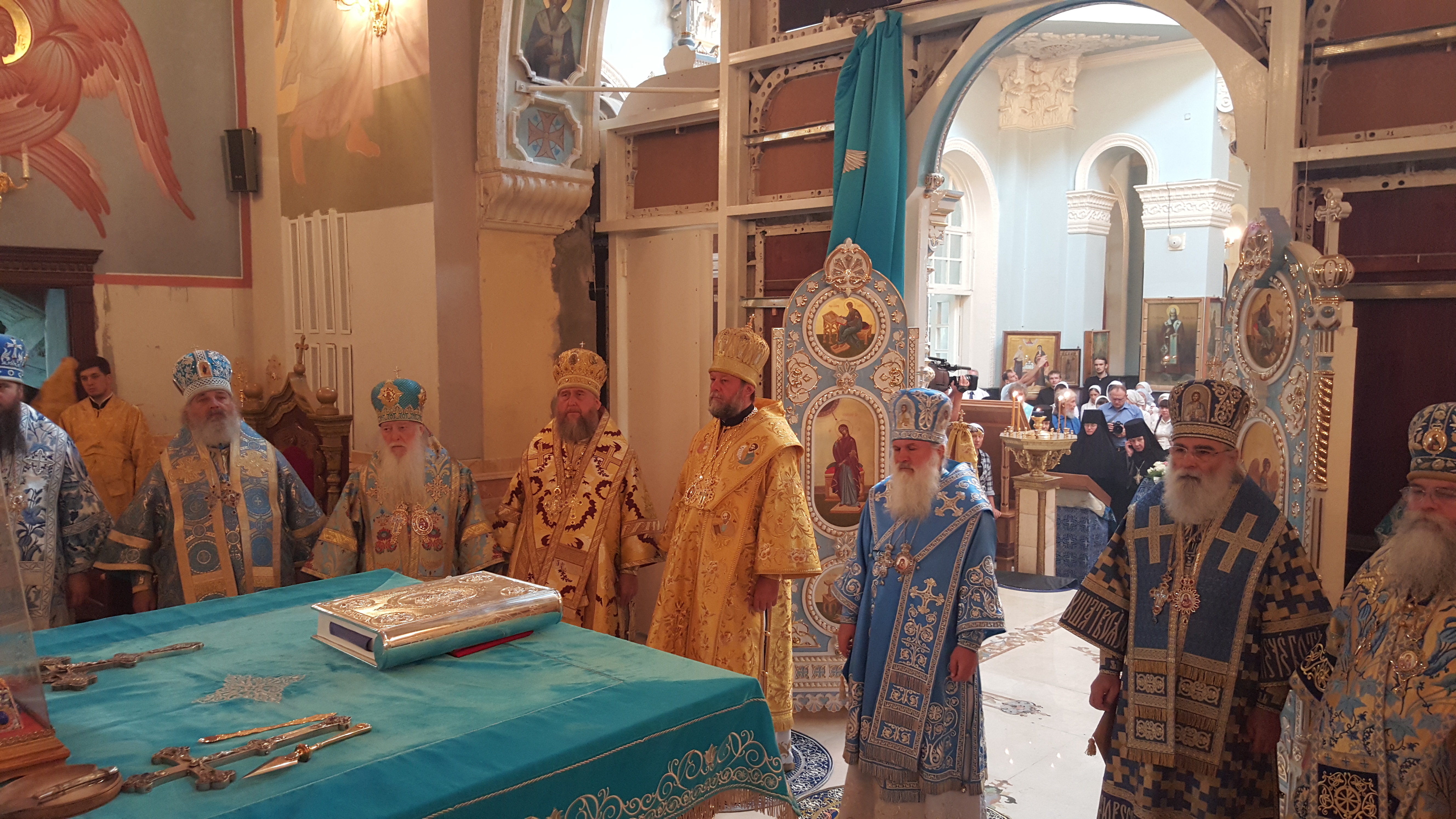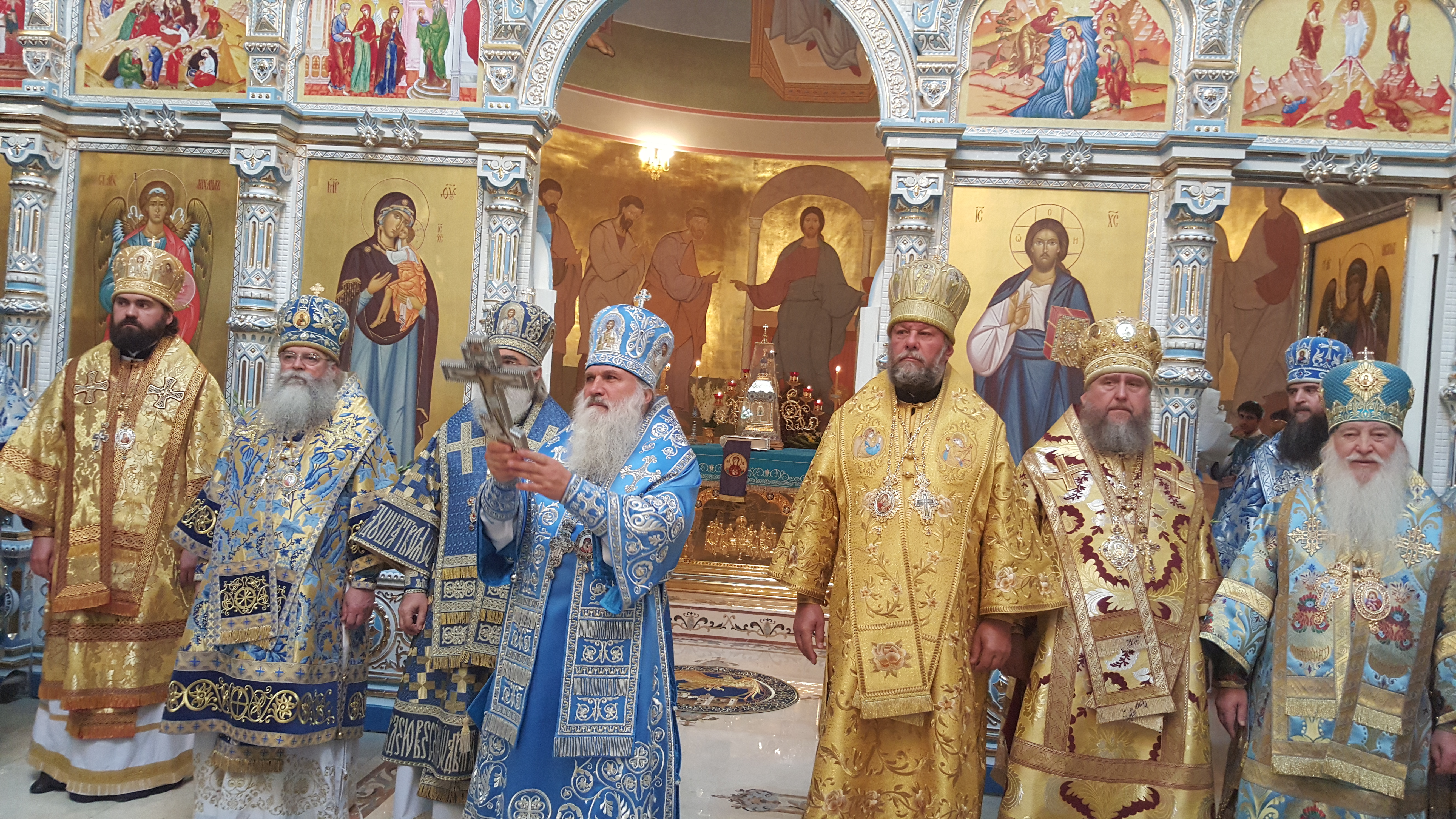 После вознесенных молитв и провозглашения многолетия митрополита Викентия поздравили приглашенные гости-архиереи.