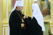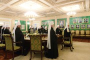 Открывая заседание, Предстоятель Русской Православной Церкви во внимание к усердным архипастырским трудам и в связи с 25-летием архиерейской хиротонии наградил митрополита Кишиневского и всея Молдовы Владимира орденом преподобного Сергия Радонежского III степени.