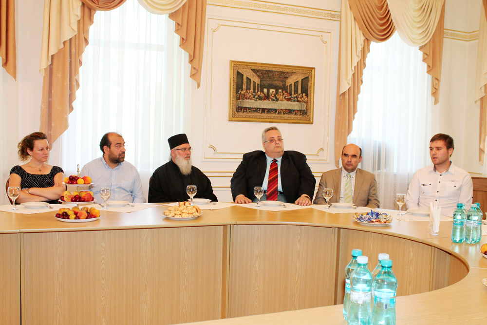 Утром, 9 июля 2013 года, в конференц-зале Епархиального управления Кишиневско-Молдавской Митрополии состоялась встреча Предстоятеля Православной Церкви Молдовы с группой греческих студентов Богословского факультета Фессалоникского Университета им. Аристотеля, которых сопровождал профессор Василиос Кукусас.