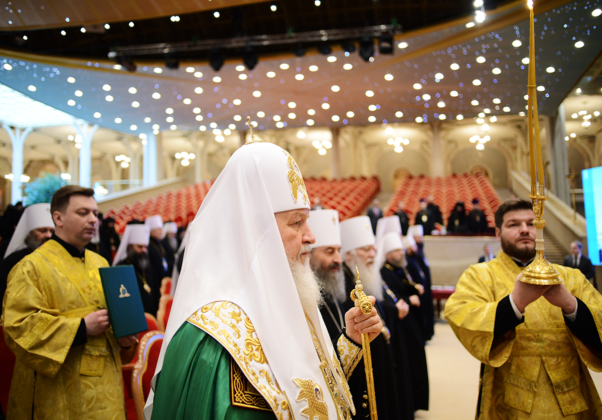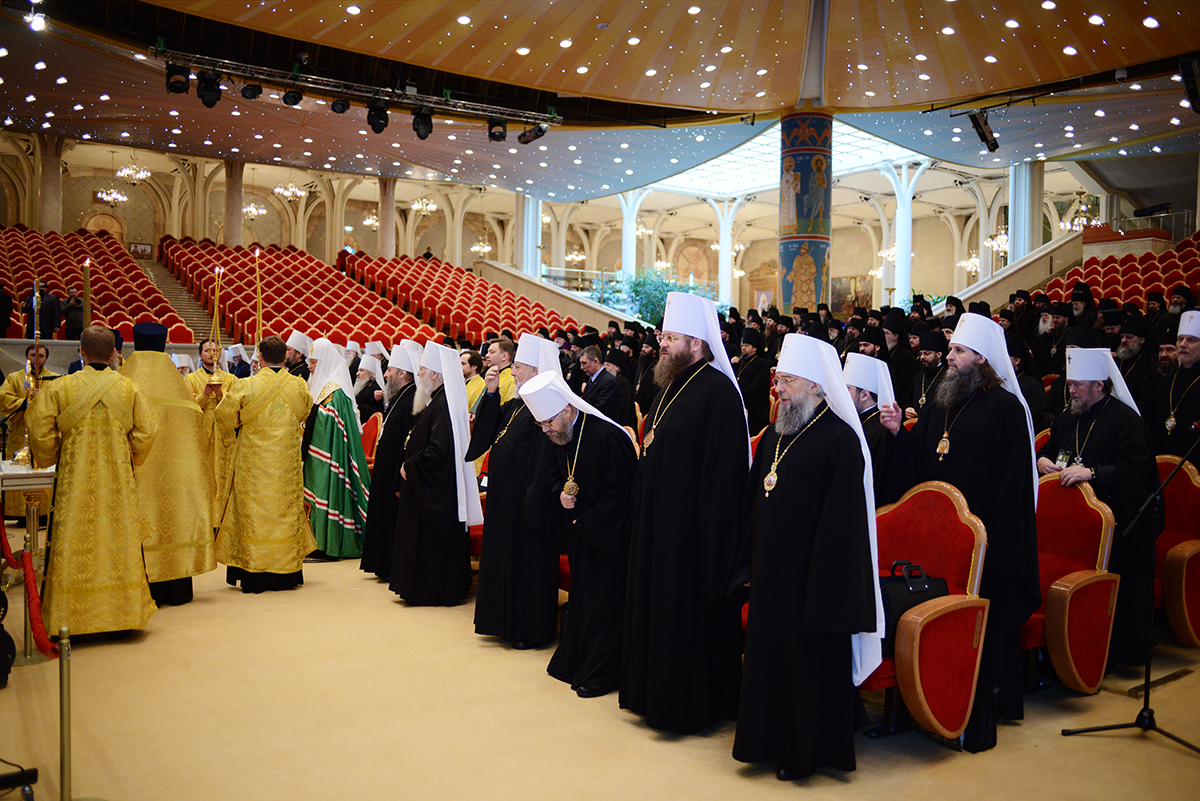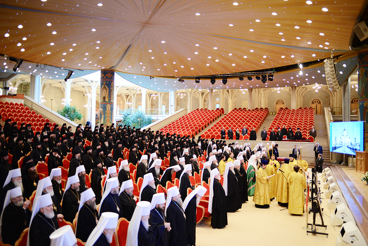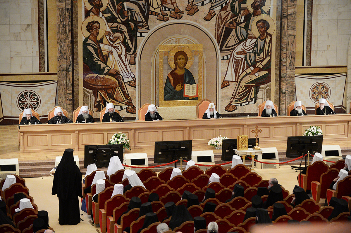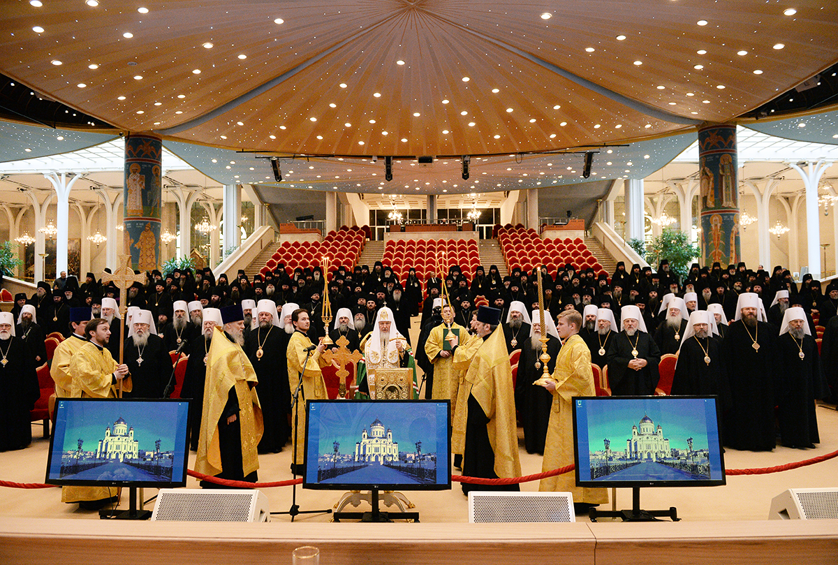 В сей же день, когда благодатью и изволением Святого Духа (Деян. 15:28) Преосвященные архипастыри Единой Русской Православной Церкви, канонически и духовно объединяющей народ Божий различных стран и континентов, собрались вкупе в Первопрестольном граде Москве для участия в работе Архиерейского Совещания, я приветствую всех вас и молитвенно желаю, чтобы в духе братской любви сообща потрудились мы к вящей славе Божией, а верным чадам церковным единого духовного пространства Московского Патриархата — на пользу.