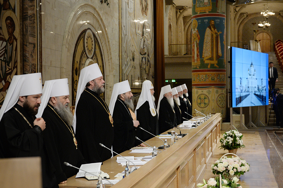 Завершая свое выступление, хотел бы обратиться ко всем вам, дорогие Владыки, со словами благодарности за понесенные усердные труды, а также за молитвенную поддержку, без которой служение Предстоятеля Церкви было бы невозможно. С особой силой я это ощутил вчера, когда мы единеми усты и единем сердцем совершали Божественную литургию в Кафедральном соборном Храме Христа Спасителя.