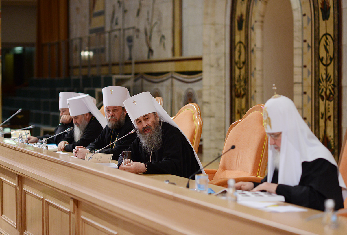Говоря о церковной ситуации на Украине, я хотел бы поблагодарить Блаженнейшего митрополита Киевского и всея Украины Онуфрия. Считаю, что мудрая и взвешенная позиция Его Блаженства помогает сохранить каноническое единство Церкви на Украине, несмотря на сложные политические условия, деструктивную деятельность раскольников и внешнее давление. Долг Церкви в настоящее время — не давать политическую оценку какой-либо из сторон вооруженного противостояния, но указывать на необходимость продолжения переговорного процесса и призывать враждующих к миру, обращая внимание на катастрофическое положение мирного населения в зоне конфликта.