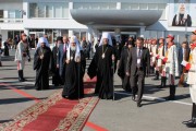 В аэропорту Кишинева Святейшего Владыку и сопровождающую его официальную делегацию Русской Православной Церкви провожали митрополит Кишиневский и всея Молдовы Владимир, епископат и духовенство Православной Церкви Молдовы, посол России в Молдове Ф.М. Мухаметшин.
