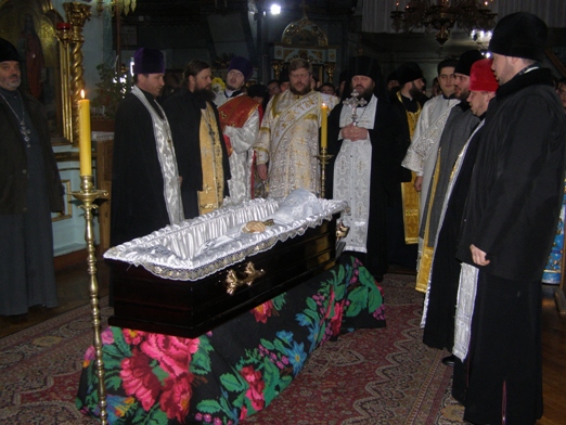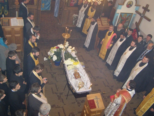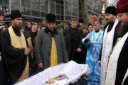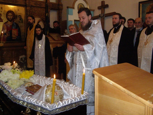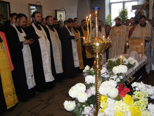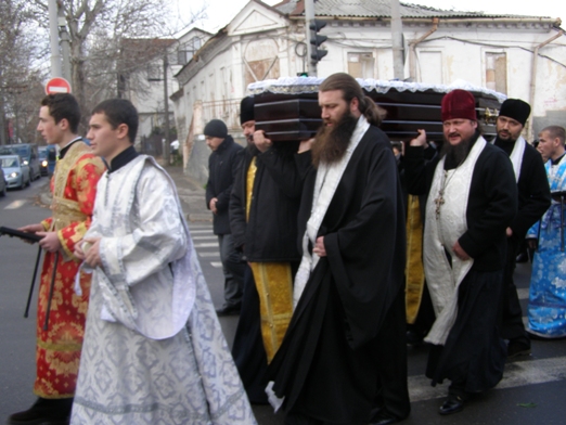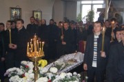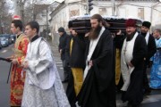 После богослужения, траурная процессия последовала от Трехсвятительского домового храма духовной академии и семинарии к столичному Чуфлинскому Федоро-Тироновскому монастырю, где их встречала монашеская община во главе с ее духовником-администратором иеромон. Николаем (Рошка).