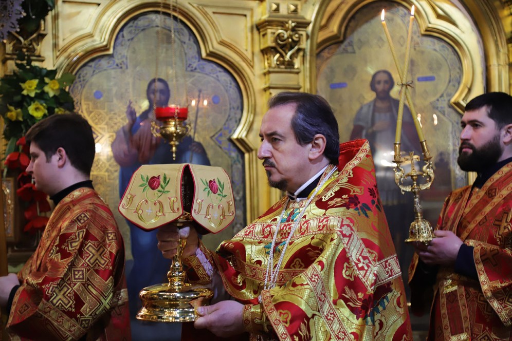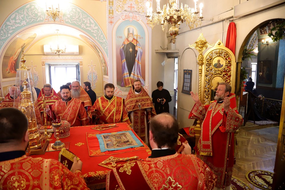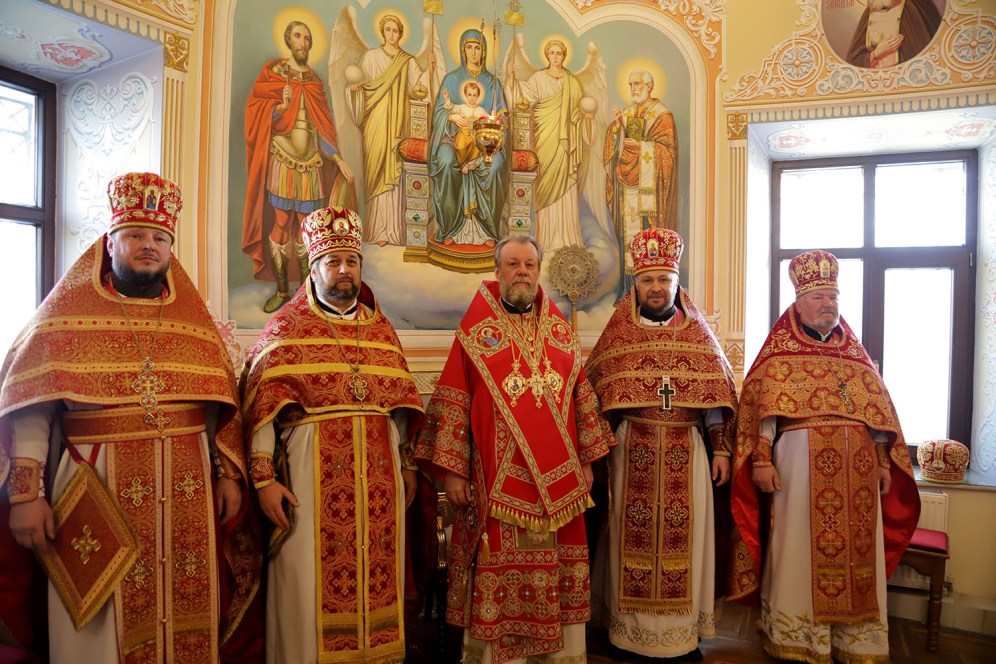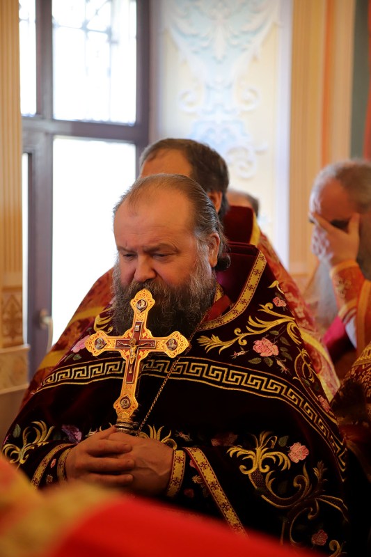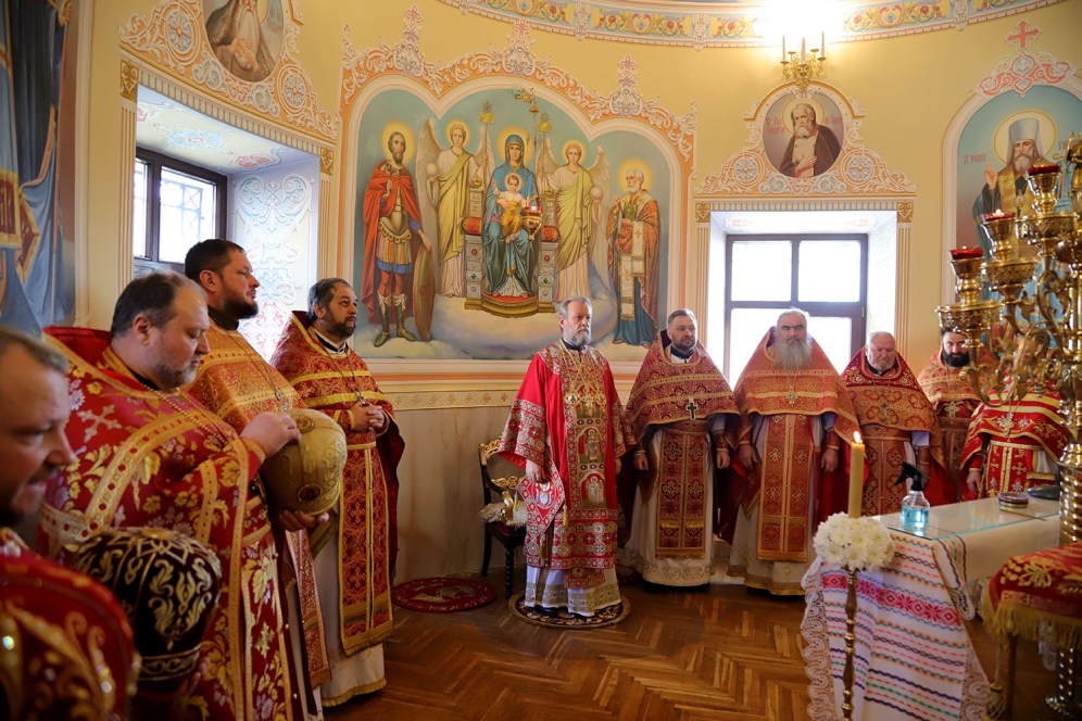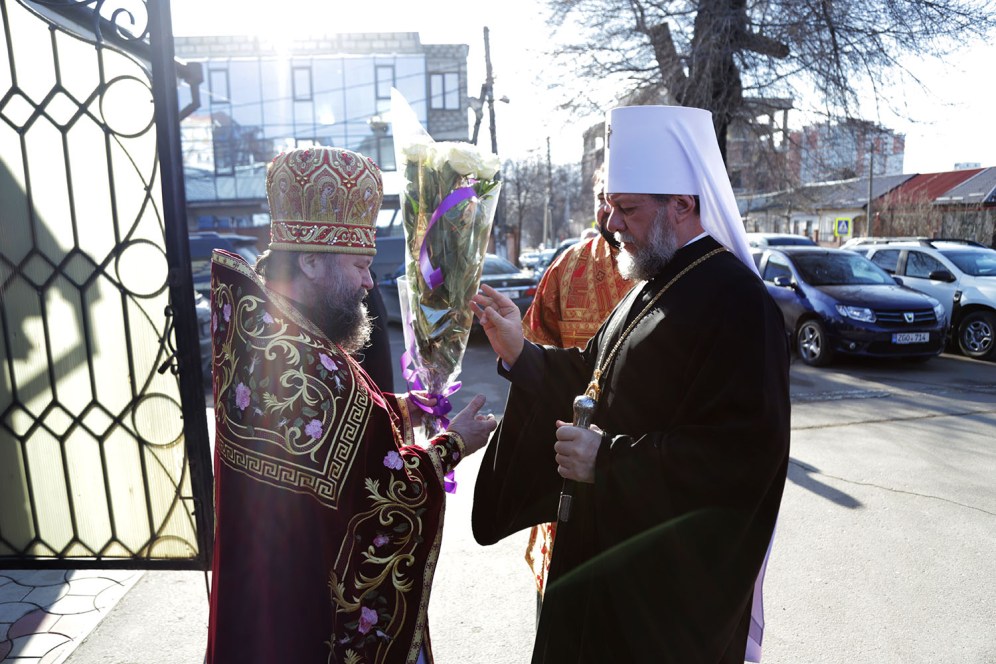 Его Высокопреосвященству сослужили: митр. прот. Вадим Кейбаш, секретарь Кишиневско-Молдавской митрополии, архимандрит Николай (Рошка), духовник-администратор Чуфлинского Федоро-Тироновского женского монастыря и председатель Синодального отдела по взаимоотношению с МВД, Вооруженными силами и Правоохранительными органами, митр. прот. Октавиан Мошин, настоятель Кишиневского Сретенского домового храма Молдавского государственного университета и председатель Синодального отдела по делам молодежи, военные священники, духовенство обители.