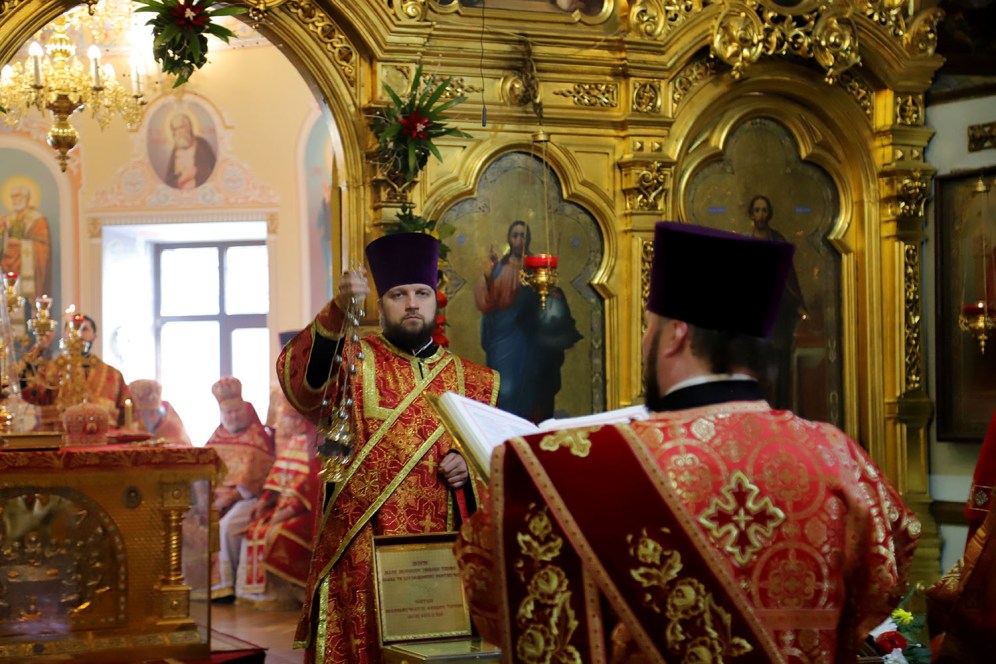 За Литургией, на Малом входе, во внимание к пастырским трудам отдельные клирики Федоро-Тироновского монастыря были удостоены богослужебных наград.