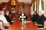 Во встречи также участвовали архимандрит Силуан (Шалару), председатель епархиального Отдела по делам монастырей, и митр. прот. Эммануил Брихунец, председатель епархиального Отдела по церковному строительству, реставрации и храмовой росписи.