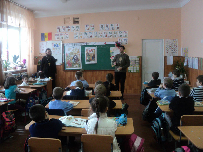 На занятиях присутствовали Эмилия Оглиндэ, конференциар университар, доктор филологии Молд. ГУ, мастеранты специальности Филологические исследования и христианская духовность и представители администрации лицея.
