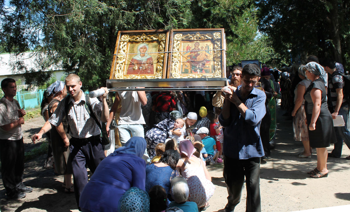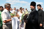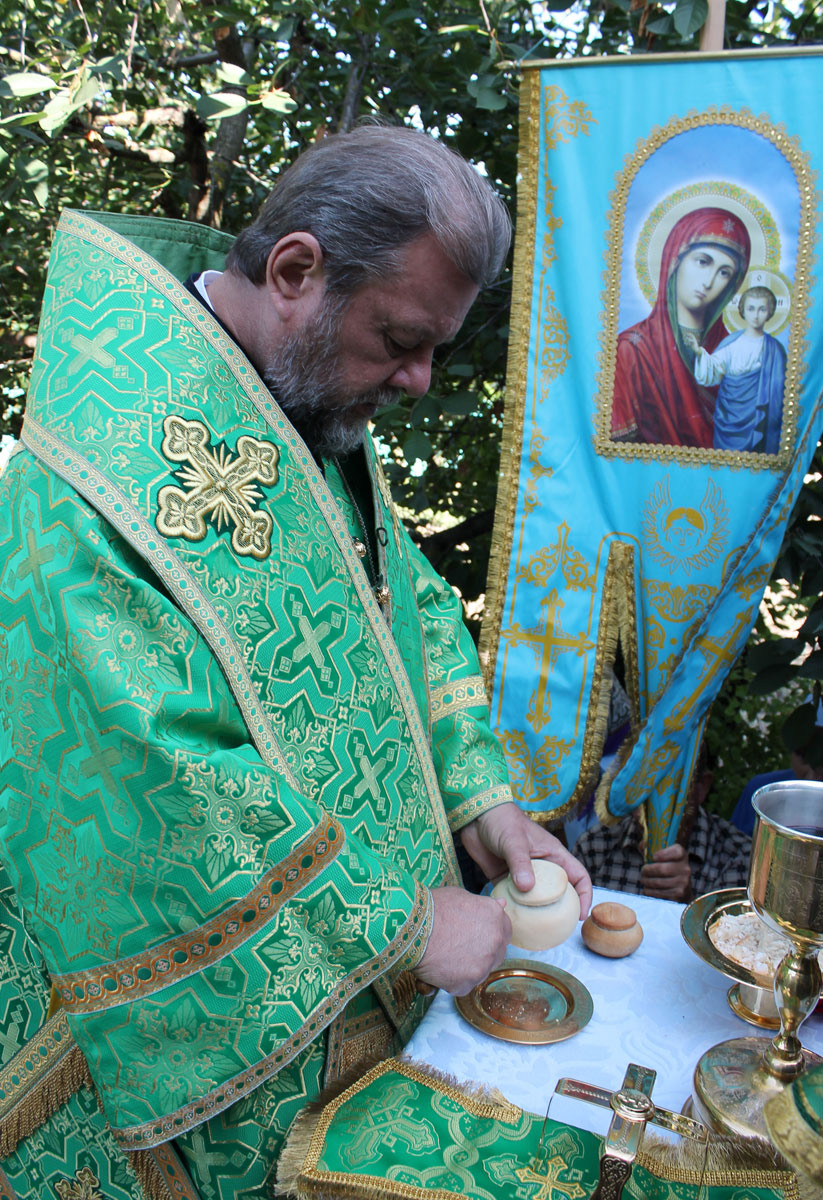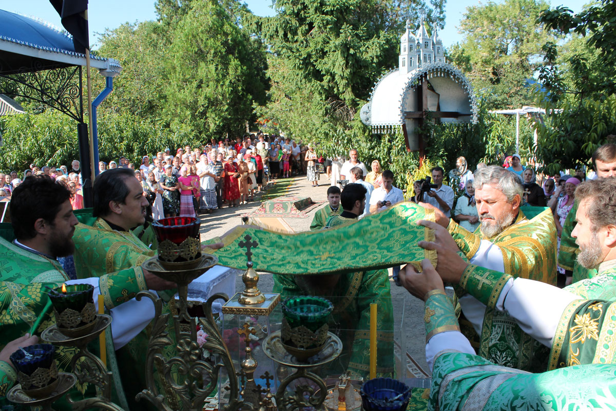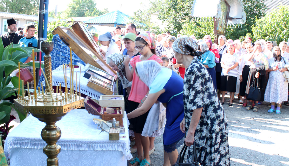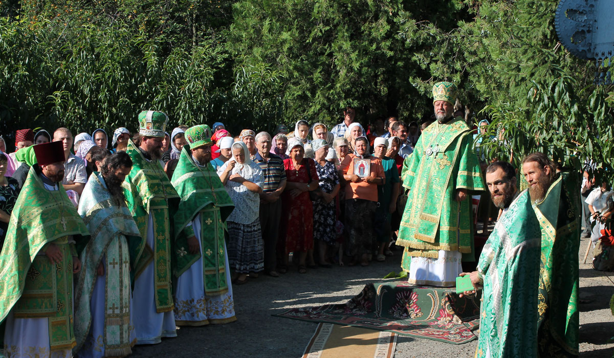 После краткого приветствия, процессия направилась к местному Параскевинскому храму, где был совершен благодарственный молебен. Последовал краткий отдых и братская трапеза.