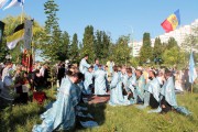 По окончании богослужения, владыка Митрополит преподал свое архиерейское благословение всем участникам Крестного хода, призвав их усердно молиться о даровании мира и спокойствия Молдавской земле, после чего выразил желание возглавить торжественное шествие до первой остановки у Богородице-Рождественской церкви, расположенной в секторе Чокана.