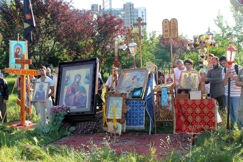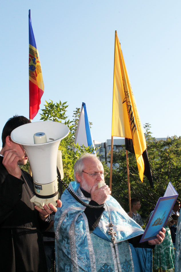 По окончании богослужения, владыка Митрополит преподал свое архиерейское благословение всем участникам Крестного хода, призвав их усердно молиться о даровании мира и спокойствия Молдавской земле, после чего выразил желание возглавить торжественное шествие до первой остановки у Богородице-Рождественской церкви, расположенной в секторе Чокана.