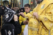 За богослужением был совершен чин освящения двух напрестольных крестов, которые были переданы в дар обители ее духовником-администратором иеромонахом Николаем (Рошка).