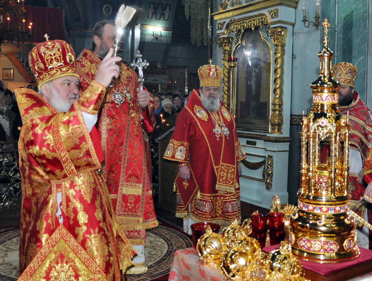 В продолжении, архиереи совершил чин освящения напрестольной дарохранительницы и нескольких лампад, которые будут установлены пред списком чтимого образа Гербовецкого иконы Божией Матери.