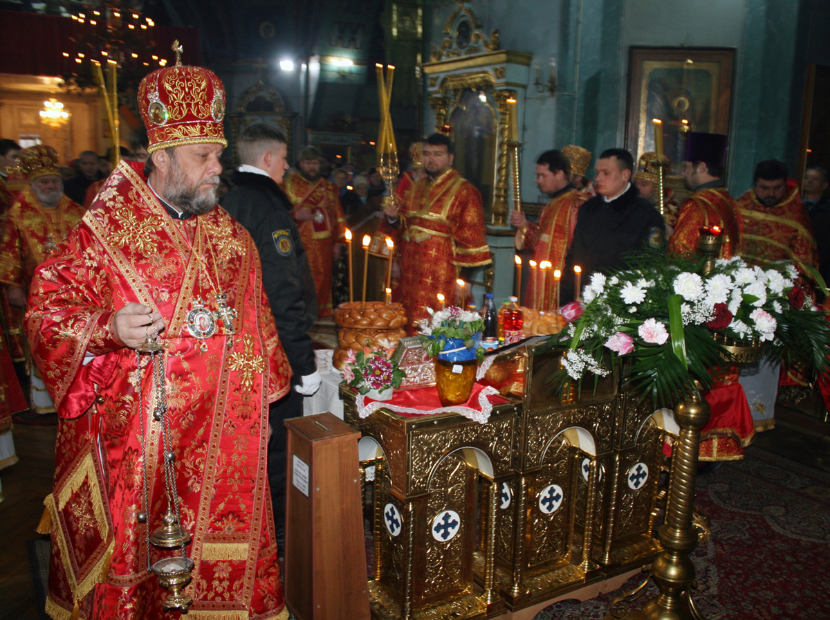 Его Высокопреосвященству сослужили: преосвященный епископ Кагульский и Комратский Анатолий, преосвященный епископ Единецкий и Бричанский Никодим, архимандрит Николай (Рошка), настоятель Чуфлинского Федоро-Тироновского монастыря г. Кишинева, а так же столичное духовенство.