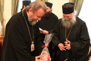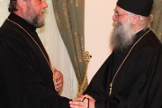 В продолжении встречи, собеседники обменялись памятными дарами, после чего архипастырь удостоил почтенного гостя юбилейной медали «200-летие основания Кишивско-Хотинской епархии».