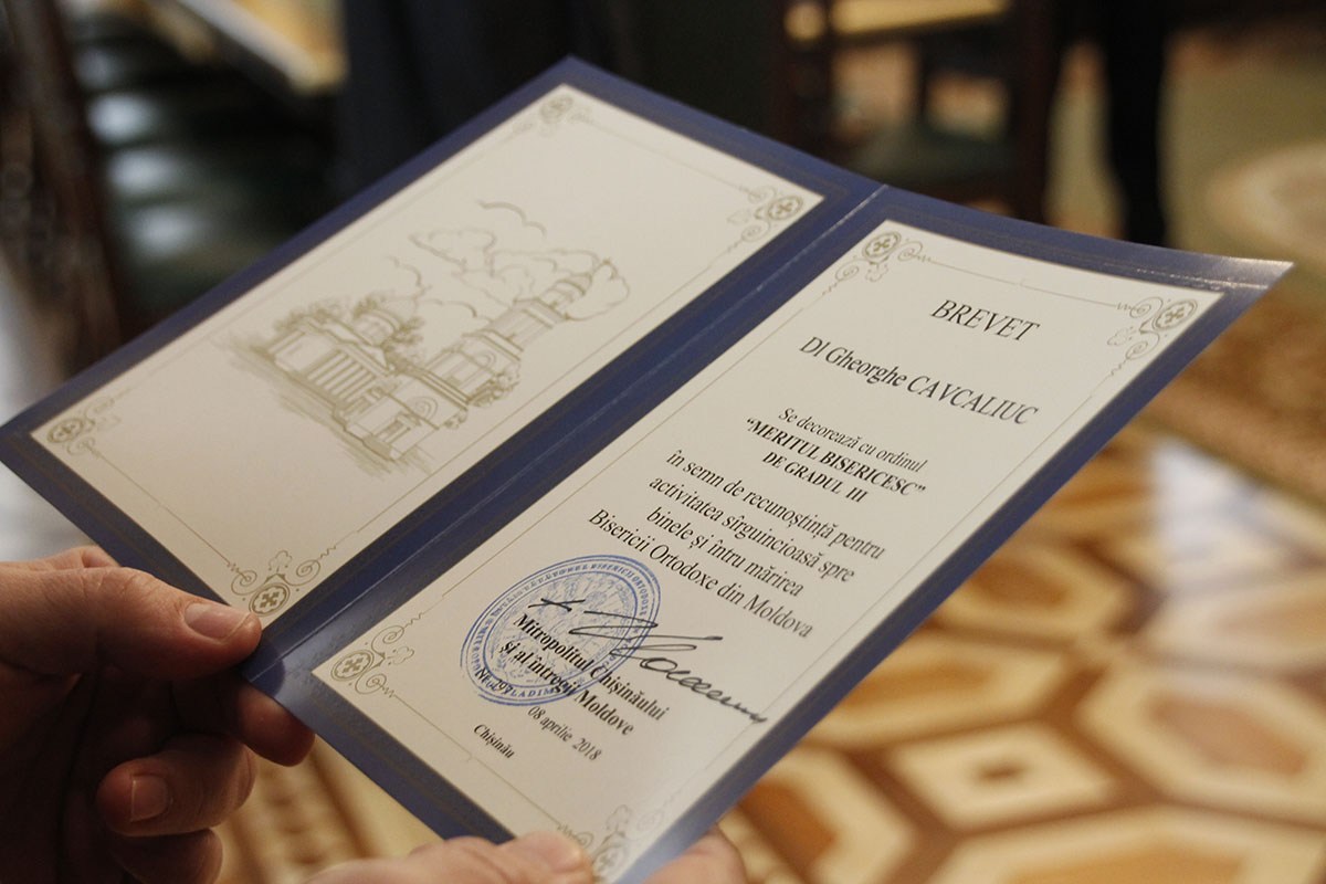 Во внимание к трудам по организации и проведению национальных гуманитарных караванов, приуроченных к Рождественским и Пасхальным праздникам, а также за оказанную помощь по сохранению и обеспечению порядка во время церковно-общественных мероприятий (Пасхальное богослужение, Радоница, Крестный молодежный ход и др.), осуществленных Кишиневско-Молдавской митрополией, Высокопреосвященный Митрополит Владимир удостоил гостей высоких церковных наград: