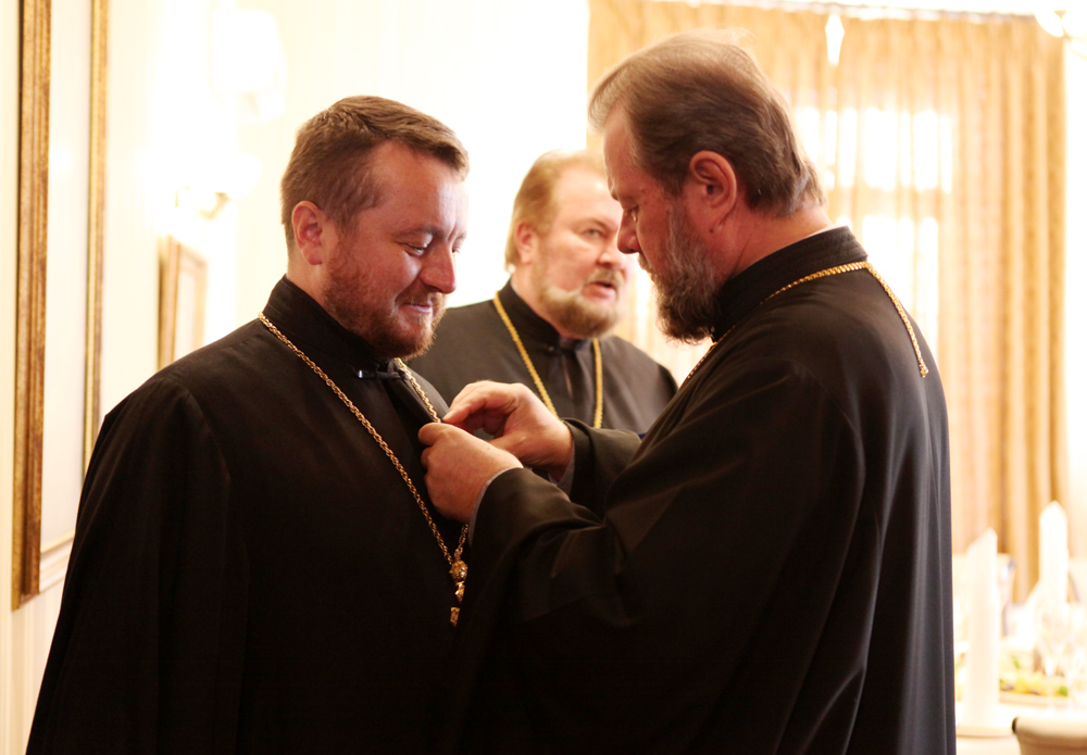Протоиерей Феодор Пелин поблагодарил Предстоятеля и всех присутствующих за высокую оценку своих трудов, заверив, что и далее приложит все свои усилия для прилежного исполнения возложенных на него послушаний.