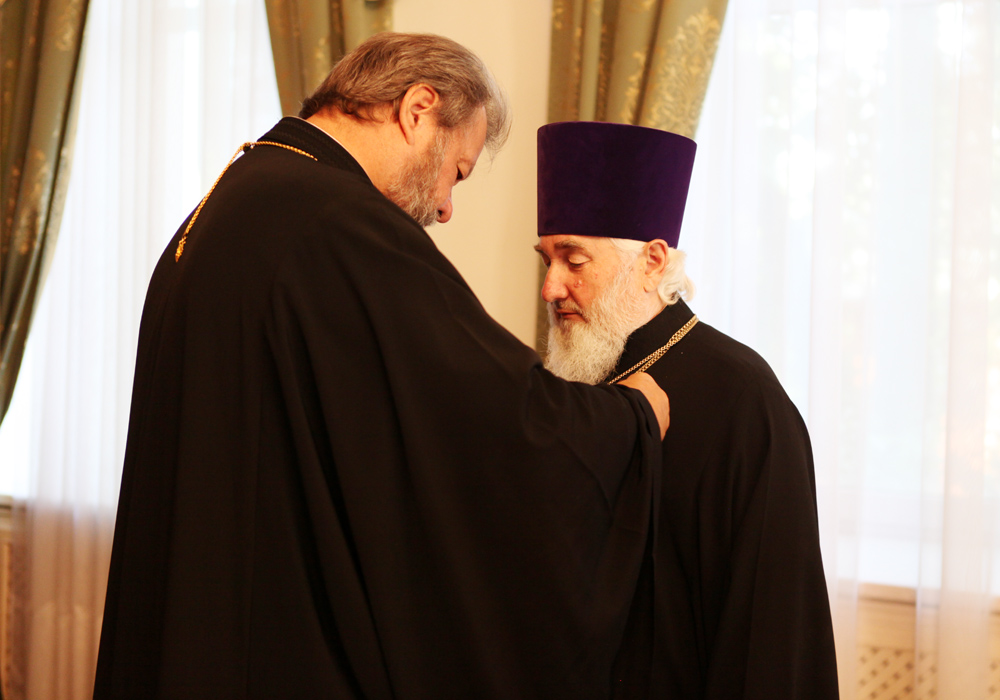 По этому случаю владыка Митрополит выразил юбиляру искренние поздравления и слова благодарности за понесенные труды на ниве пастырского служения на протяжении более четырех десятилетий, высоко оценив его вклад в продвижение православных ценностей среди молдавского населения. Архиерей зачитал юбиляру указ о награждении его патриаршим орденом, после чего поздравил его еще раз с этой знаменательной датой, пожелав ему Божией помощи в несении возложенных на него послушаний с тем же дерзновением и с той же самоотдачей, с которыми он и прежде неустанно служил Православной Церкви и молдавскому народу.
