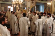 Его Высокопреосвященству сослужили: Высокопреосвященный архиепископ Тираспольский и Дубоссарский Савва, Преосвященный епископ Кагульский и Комратский Анатолий, Преосвященный епископ Единецкий и Бричанский Никодим, духовник Кишиневского Феодоро-Тироновского Чуфлинского женского монастыря архим. Николай (Рошка), благочинный церквей Комратского района митр. прот. Петр Келеш, секретарь Епархиального Управления Еденицко-Бричанской епархии митр. прот. Адриан Котеля, соборное духовенство, а также священнослужители Кагульско-Комратской епархии.