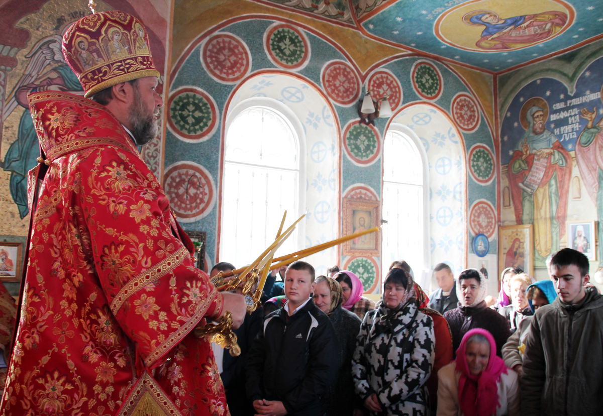 У врат храма Высокопреосвященного владыку Митрополита встречали под звон колоколов и хлебом-солью благочинный церквей Ново-Аненского района протоиерей Игорь Келя, настоятель прихода протоиерей Георгий Паладичук и примар села Спея Валерий Котец.