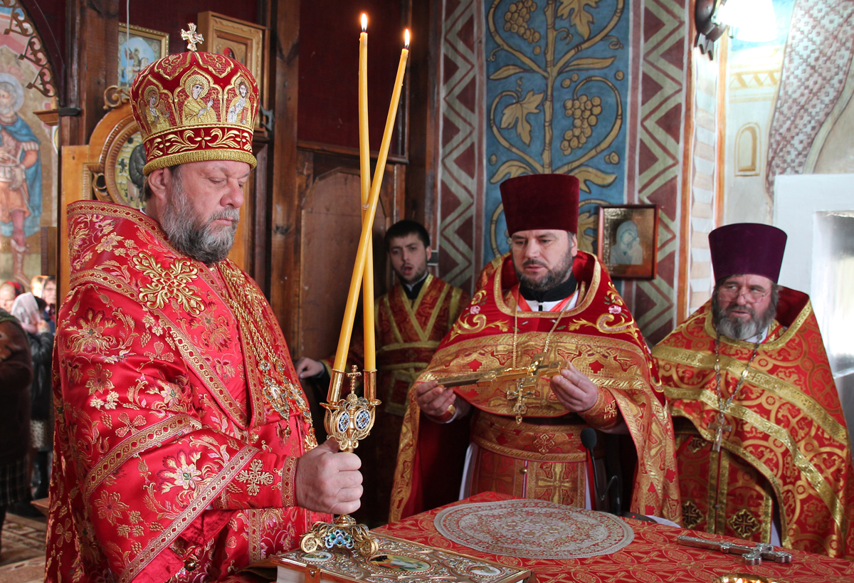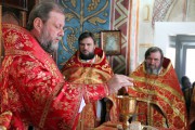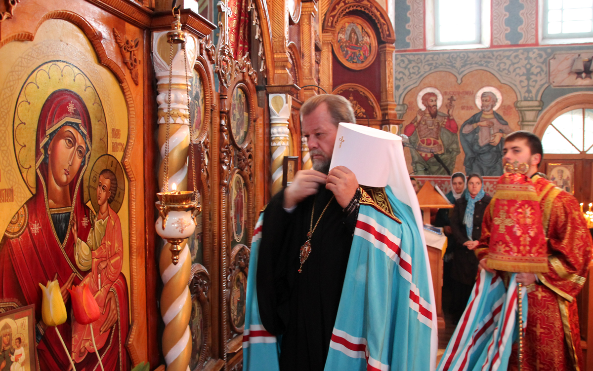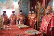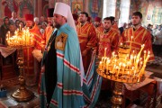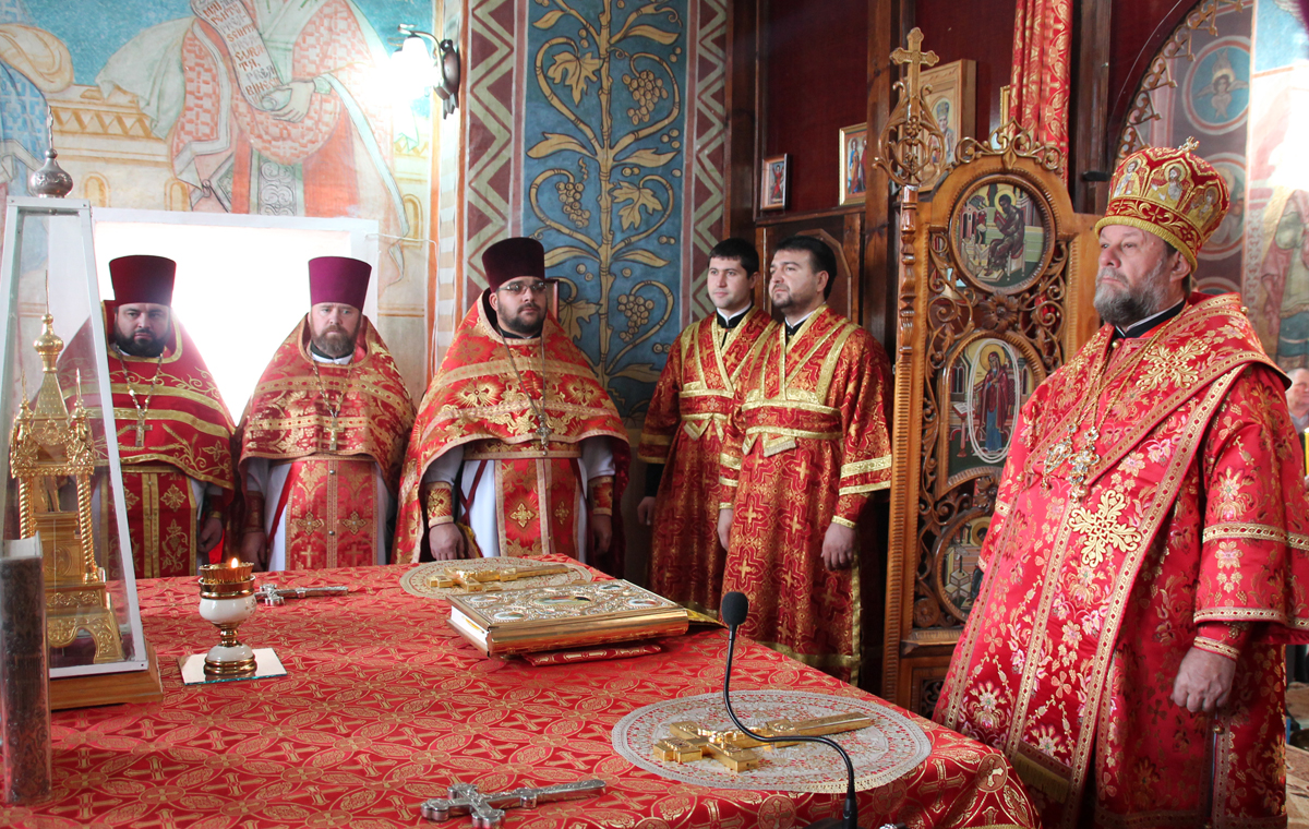 По заамвонной молитве, Высокопреосвященный Митрополит Владимир возглавил благодарственный молебен о здравии всех присутствующих, после чего обратился с архипастырским словом к пастве. Иерарх поздравил всех с престольным праздником прихода, пожелав всем Божиего благословения во всех ежедневных трудах.