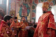 Сослужили Его Высокопреосвященству собор священнослужителей Ново-Аненского благочиния. На малом входе отдельные клирики благочиния и ктиторы прихода были удостоены высоких церковных наград.