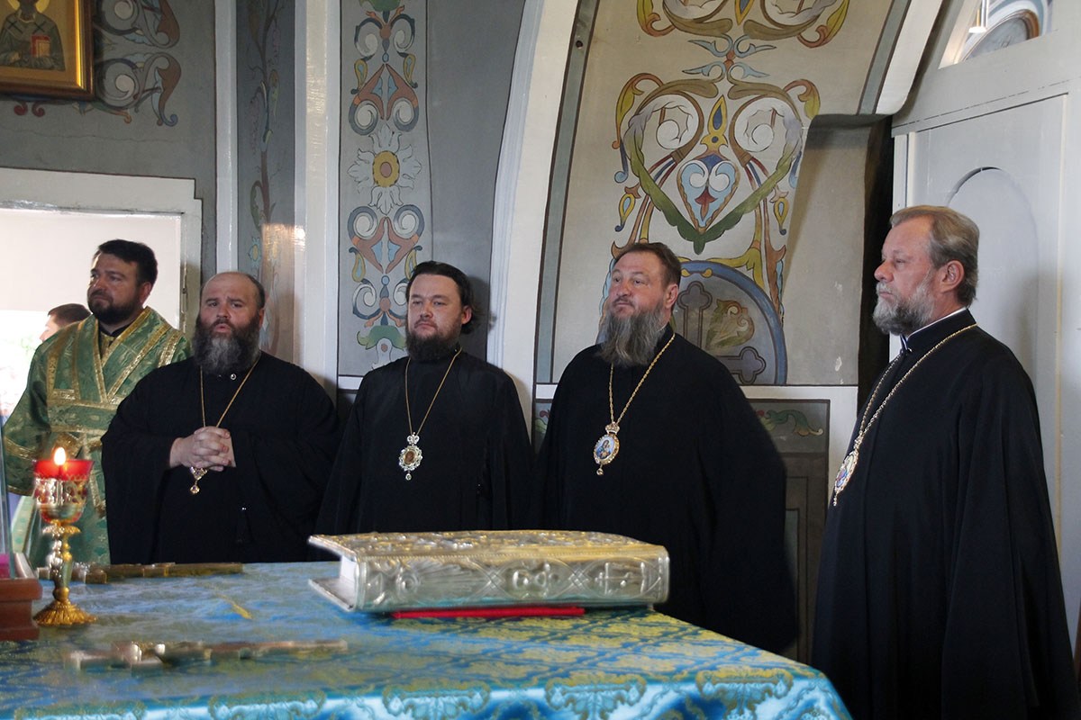 Его Высокопреосвященству сослужили: архиепископ Тираспольский и Дубоссарский Савва, епископ Мелекесский и Чердаклинский Диодор, епископ Орхейский Силуан, викарий Кишиневской епархии, епископ Златоустовский и Саткинский Викентий, секретарь Кишиневско-Молдавской митрополии митр. прот. Вадим Кейбаш, секретарь Тираспольско-Дубоссарской епархии митр. прот. Иоанн Калмык, наместник Свято-Вознесенского Ново-Нямецкого Кицканского монастыря архимандрит Паисий (Чекан), духовник-администратор Феодоро-Тироновского Кишиневского монастыря архимандрит Николай (Рошка), благочинные Центрального, Слободзейского, Дубоссарского, Григориопольского, Каменского и Рыбницкого благочиннических округов, духовенство Кишиневской, Тираспольской епархий, гости в священном сане.