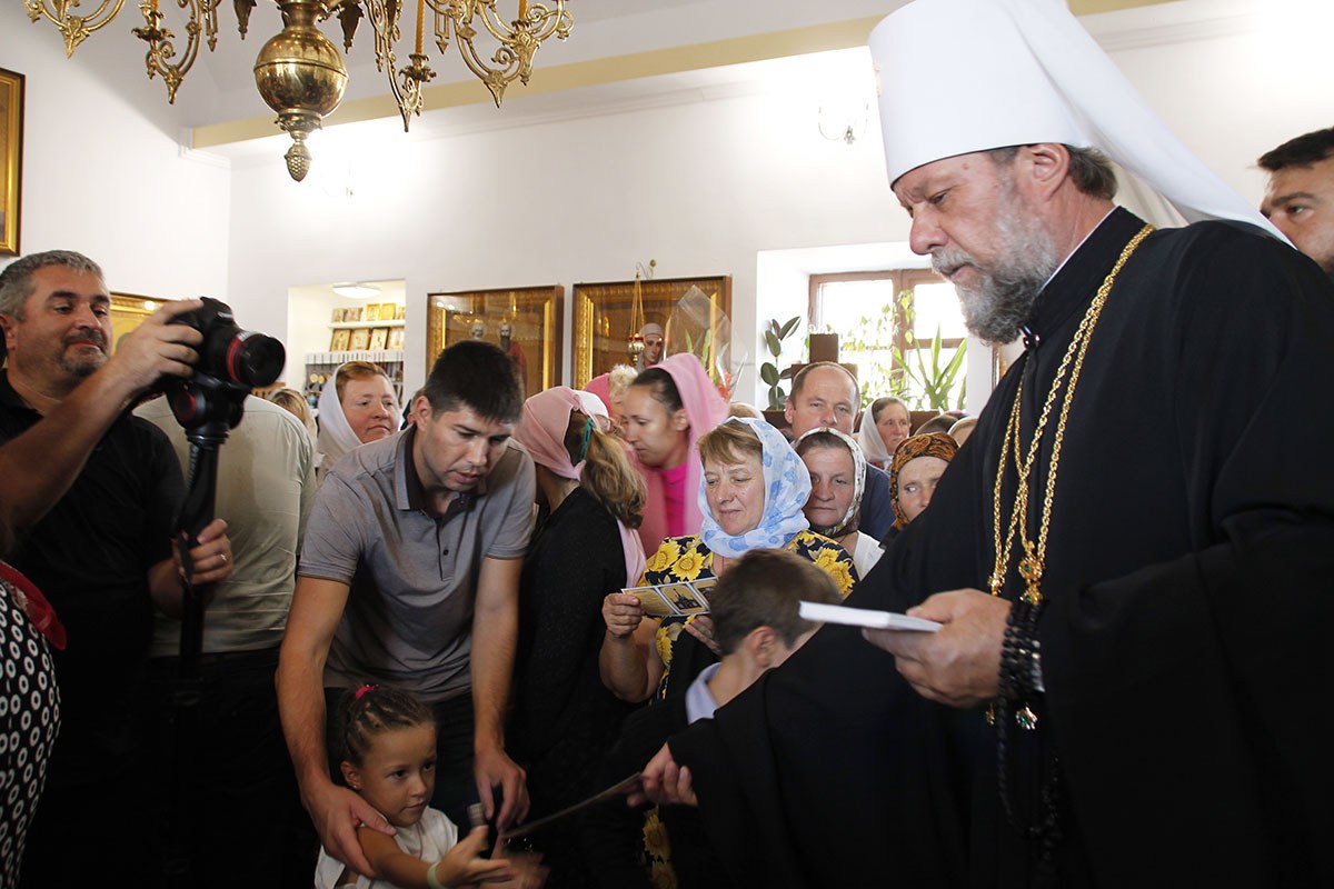 По окончании богослужения, последовал благодарственный молебен, после чего Владыка Митрополит обратился к присутствующим с назидательным словом, говоря о вере, богоугодных делах и молитве: