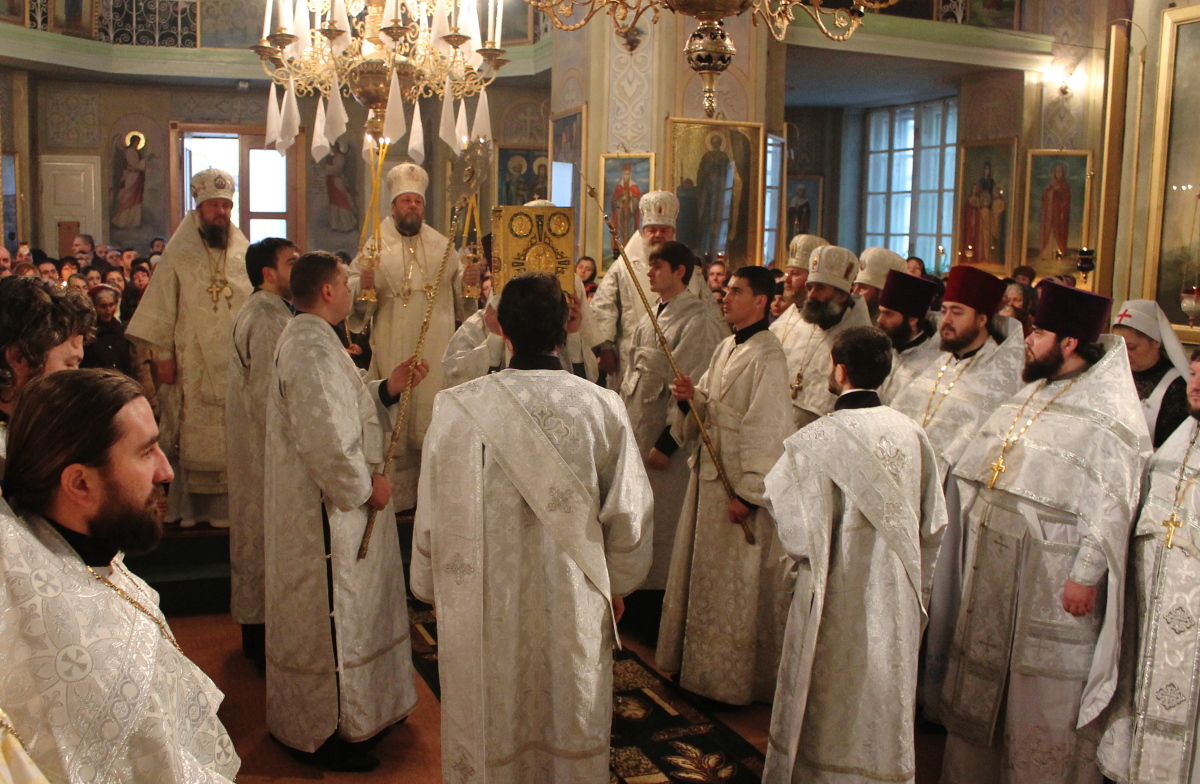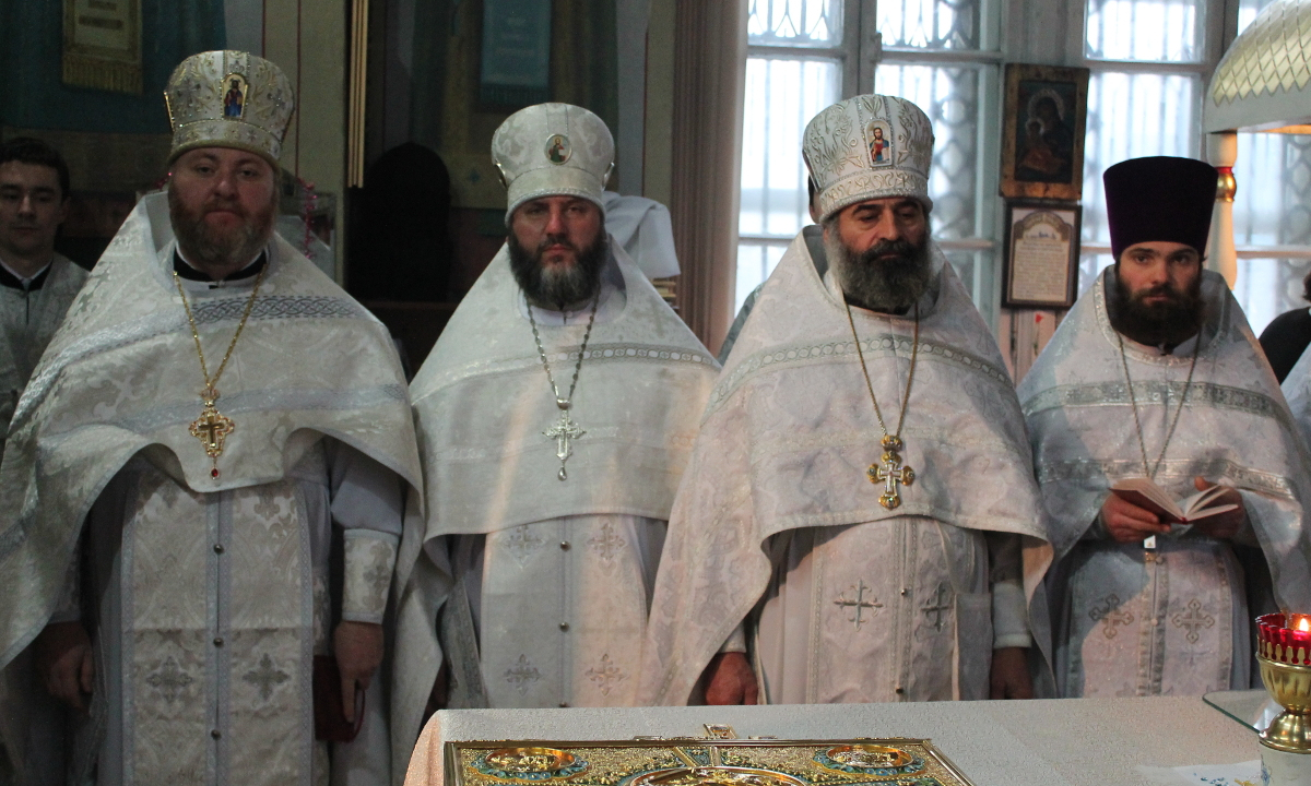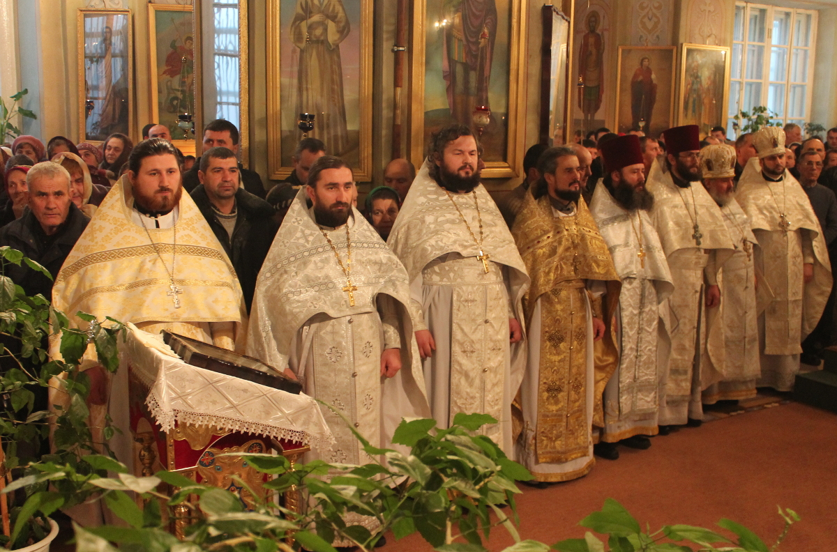 Его Высокопреосвященству сослужили: Высокопреосвященный архиепископ Тираспольский и Дубоссарский Савва, Преосвященный епископ Кагульский и Комратский Анатолий, Преосвященный епископ Единецкий и Бричанский Никодим, духовник Кишиневского Феодоро-Тироновского Чуфлинского женского монастыря архим. Николай (Рошка), благочинный церквей Комратского района митр. прот. Петр Келеш, секретарь Епархиального Управления Еденицко-Бричанской епархии митр. прот. Адриан Котеля, соборное духовенство, а также священнослужители Кагульско-Комратской епархии.