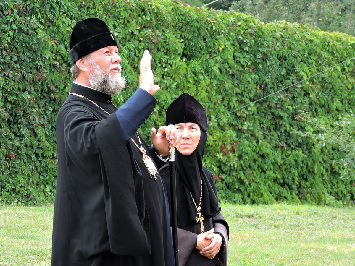 Настоятельница обители игуменья Епистимия (Гончаренко) сообщила Его Высокопреосвященству обо всех этапах уже осуществленных и запланированных работ по восстановлению и обновлению целого ряда объектов, расположенных на территории монастыря.
