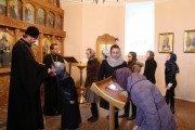 Игуменья Епистимия (Гончаренко) ознакомила Предстоятеля с результатами в области духовного образования, которые были достигнуты учащимися в Сурученском женском Духовном семинаре-лицее «Королева Мария», действующем на территории монастыря.