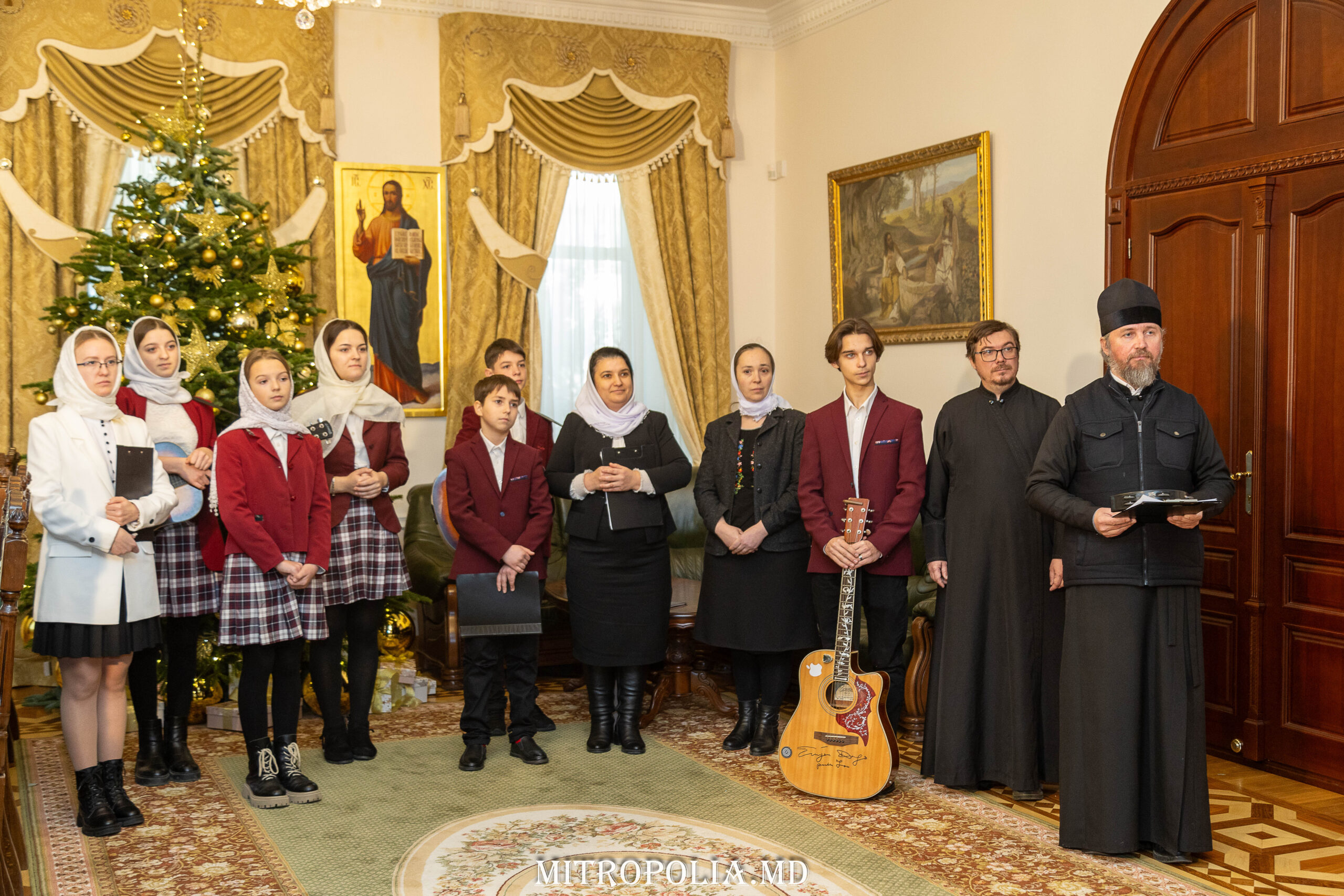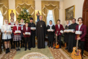 Утром, 4 января 2024 года, Высокопреосвященный Митрополит Владимир принял в своей резиденции первые детские хоральные коллективы, которые по сложившейся доброй традиции ежегодно в преддверии зимних праздников посещают Епархиальное управление Кишиневско-Молдавской митрополии, чтобы поздравить главу Православной Церкви Молдовы с Рождеством Христовым.
