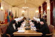 Святейший Патриарх Кирилл обратился к членам Священного Синода с приветственным словом, в котором, в частности, отметил: «Раз в год мы проводим заседание Синода в историческом здании Святейшего Правительствующего Синода в городе Санкт-Петербурге. Стены, которые нас окружают, хотим мы этого или нет, переносят нас в то прошлое, когда особым образом укреплялась наша Церковь, укреплялась духовно и материально — создавались новые епархии, монастыри, прославлялись святые угодники, являлись миру великие подвижники нашей земли. Все это возлагает на нас особую ответственность и за укрепление жизни Церкви, и за духовное здоровье нашего народа. Дай Бог, чтобы каждое заседание нашего Синода было вкладом в эту очень важную духовную программу развития жизни нашего народа, укрепления жизни нашей Церкви».