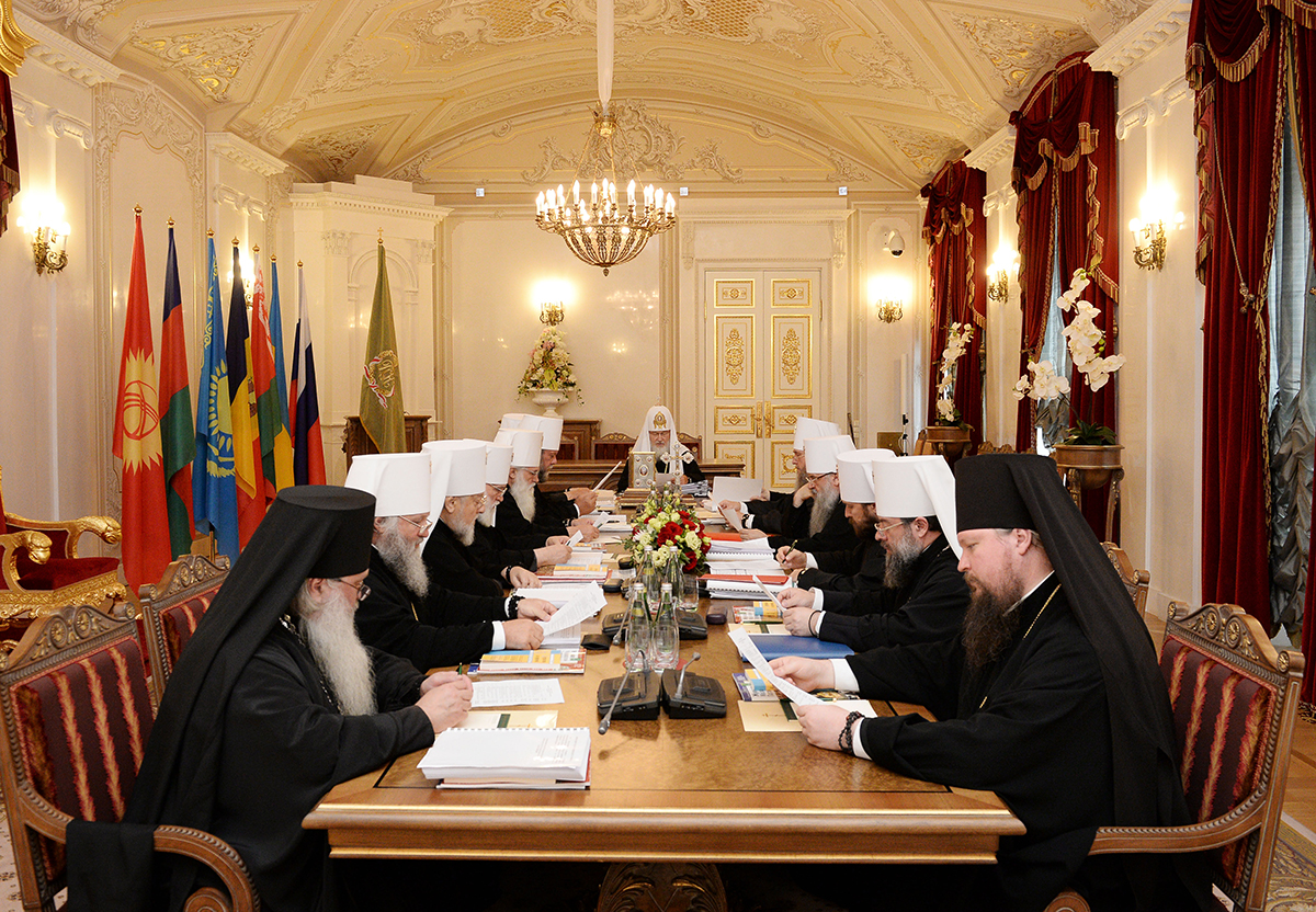 Святейший Патриарх Кирилл обратился к членам Священного Синода с приветственным словом, в котором, в частности, отметил: «Раз в год мы проводим заседание Синода в историческом здании Святейшего Правительствующего Синода в городе Санкт-Петербурге. Стены, которые нас окружают, хотим мы этого или нет, переносят нас в то прошлое, когда особым образом укреплялась наша Церковь, укреплялась духовно и материально — создавались новые епархии, монастыри, прославлялись святые угодники, являлись миру великие подвижники нашей земли. Все это возлагает на нас особую ответственность и за укрепление жизни Церкви, и за духовное здоровье нашего народа. Дай Бог, чтобы каждое заседание нашего Синода было вкладом в эту очень важную духовную программу развития жизни нашего народа, укрепления жизни нашей Церкви».