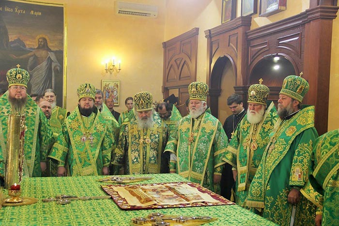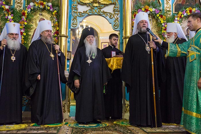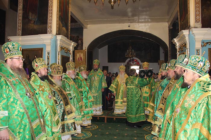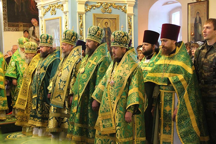 Божественную Литургию в Михаило-Архангельском соборе города Уральска возглавили: глава Православной Церкви Молдовы митрополит Кишиневский и всея Молдовы Владимир, глава Православной Церкви Казахстана митрополит Астанайский и Казахстанский Александр и глава Среднеазиатского Митрополичьего округа митрополит Ташкентский и Узбекистанский Викентий.