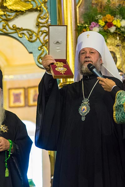 Митрополит Астанайский и Казахстанский Александр тепло поздравил владыку архиепископа с памятной датой и наградил его орденом Казахстанского Митрополичьего округа «Ынталы Қызмет Үшiн» (За Усердное Служение), а также подарил чествуемому архипастырю копию панагии священномученика Уара, епископа Липецкого, умученного в карагандинском лагере, сохраненную приснопамятным митрополитом Алма-Атинским и Казахстанским Иосифом (Черновым).
