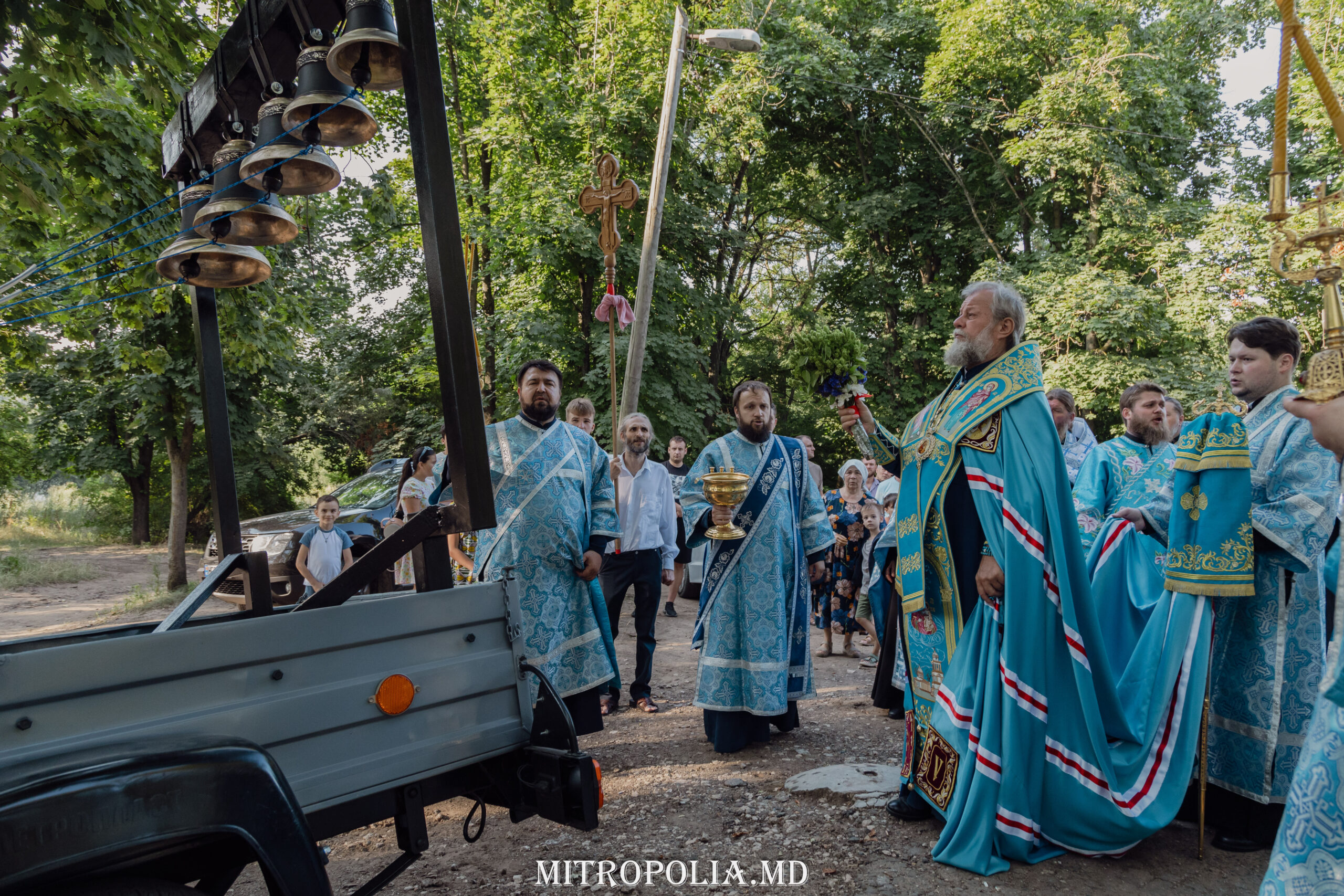 По окончании богослужения, владыка Митрополит преподал свое архиерейское благословение всем участникам Крестного хода, призвав их усердно молиться о даровании мира и спокойствия Молдавской земле. Далее, Его Высокопреосвященство совершил чин благословения 5 церковных колоколов, которые были приобретены Епархиальным управлением Кишиневско-Молдавской митрополии и переданы в дар организаторам Крестных ходов. От ныне эти колокола будут всегда сопровождать участников всех религиозных шествий, которые будут организованы на территории Республики Молдова.
