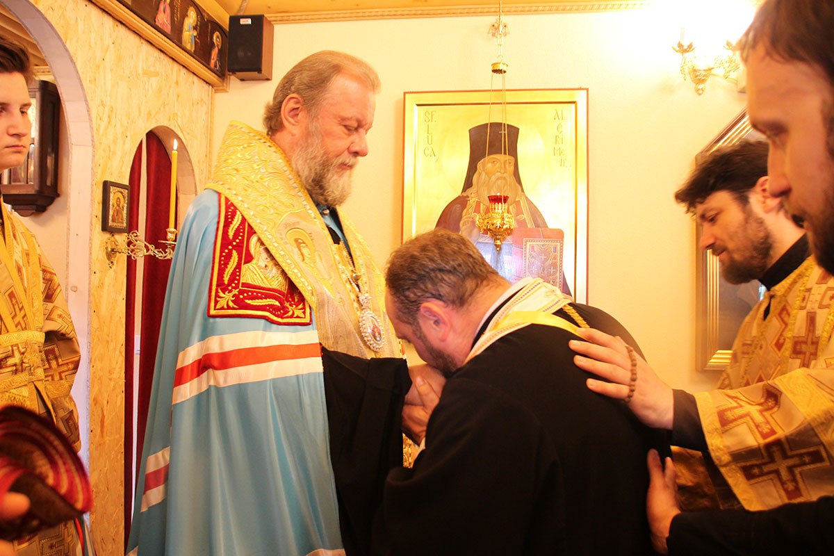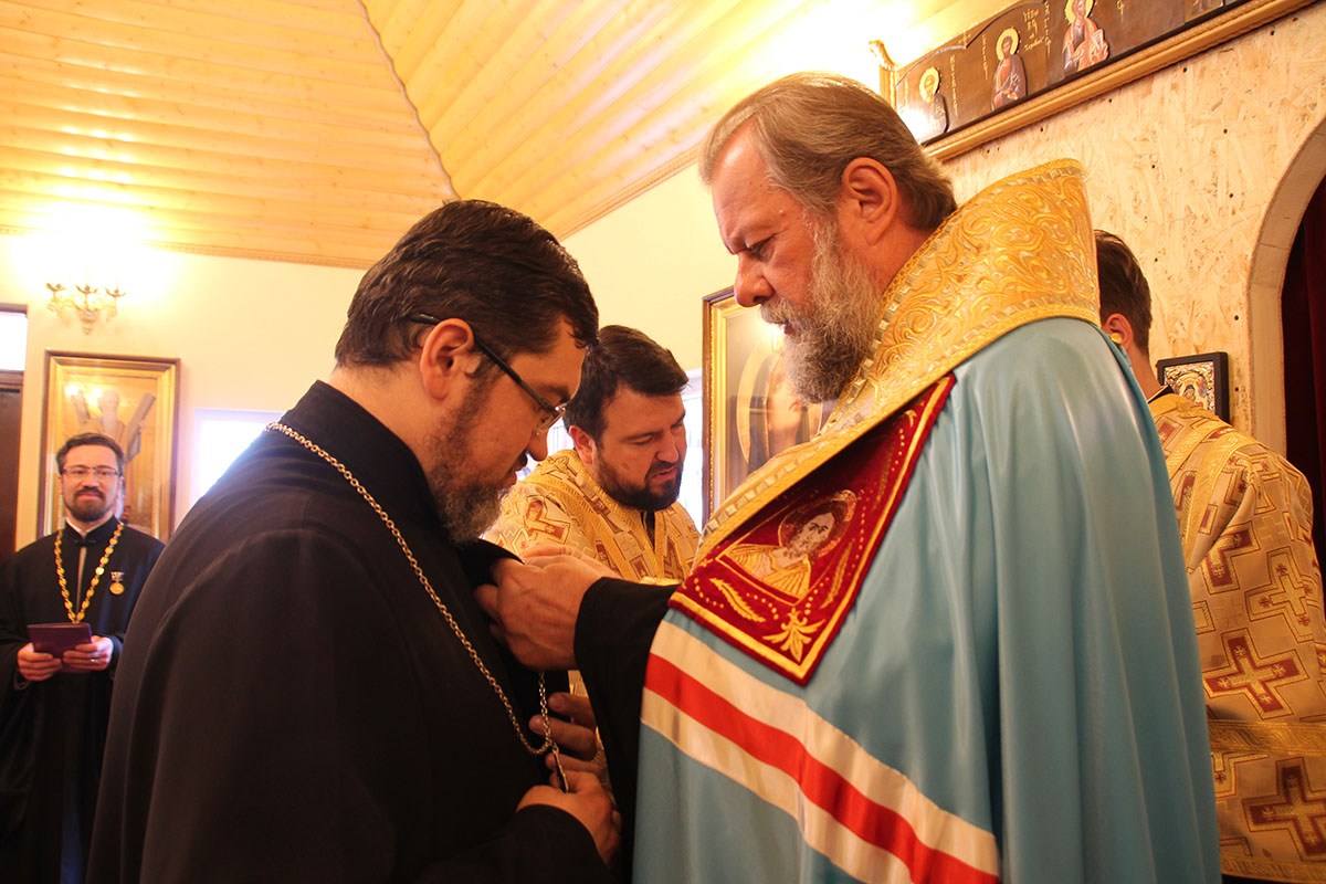 По окончании богослужения, Высокопреосвященный Владыка Митрополит обратился к прихожанам с архипастырским словом. Иерарх выразил слова благодарности настоятелю, духовенству прихода и всем, кто оказал посильную помощь в постройке и благоустройстве церкви и часовни. Во внимание к понесенным трудам, Митрополит Владимир наградил настоятеля прихода прот. Адриана Фрунзэ правом ношения палицы за Литургией. Также отдельные клирики храма были удостоены богослужебных и церковных наград.