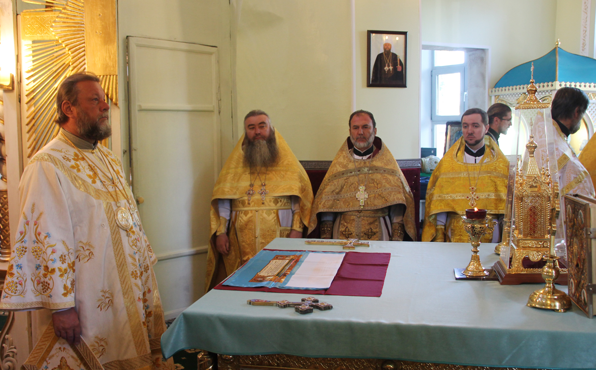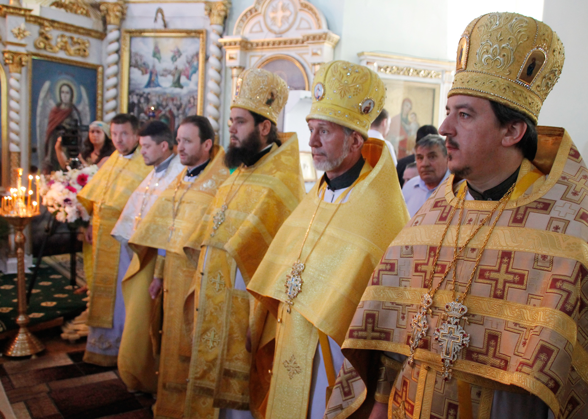 Его Высокопреосвященству сослужили: митр. прот. Вадим Кейбаш, секретарь Митрополии и благочинный церквей Кишиневского муниципия (Сектор 1), архим. Адриан (Бачу), настоятель Сахарнянского Свято-Троицкого мужского монастыря, митр. прот. Анатолий Стефанов, благочинный церквей Яловенского района, митр. прот. Евгений Бытка, настоятель церкви, клирики Всехсвятского храма.