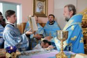 На малом входе, во внимание к приложенным трудам по восстановлению и благоустройству Покровского храма, его настоятель митр. прот. Виталий Брума был удостоен богослужебной награды – правом служения Литургии с отверстыми Царскими вратами по «Отче наш…». Также богослужебных наград были удостоены отдельные священнослужители IV-го сектора Кишиневского благочиния.