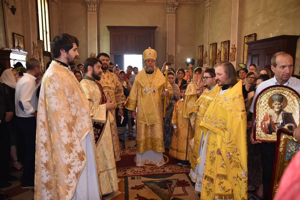 10 июня 2018 года, в Неделю 2-ю по Пятидесятнице, в ходе пастырско-миссионерского визита в пределы севера Италийской Республики, Высокопреосвященный Митрополит Кишиневский и всея Молдовы Владимир совершил Божественную литургию в Свято-Георгиевском храме г. Скио.