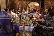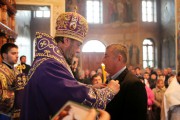 По окончании богослужения, архипастырь обратился к присутствующим с поучительным словом, после чего удостоил церковных орденов некоторых ктиторов и благотворителей храма, пожелав им помощи Божией в их богоугодном деле.