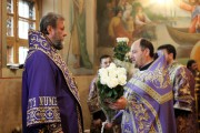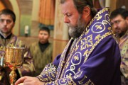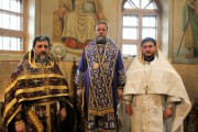 Его Высокопреосвященству сослужили: секретарь Митрополии митр. прот. Вадим Кейбаш, игумен Успенского Цыганештского мужского монастыря архим. Иринарх (Костру), благочинный церквей Дрокиевского района митр. прот. Павел Вулуцэ и духовенство храма.