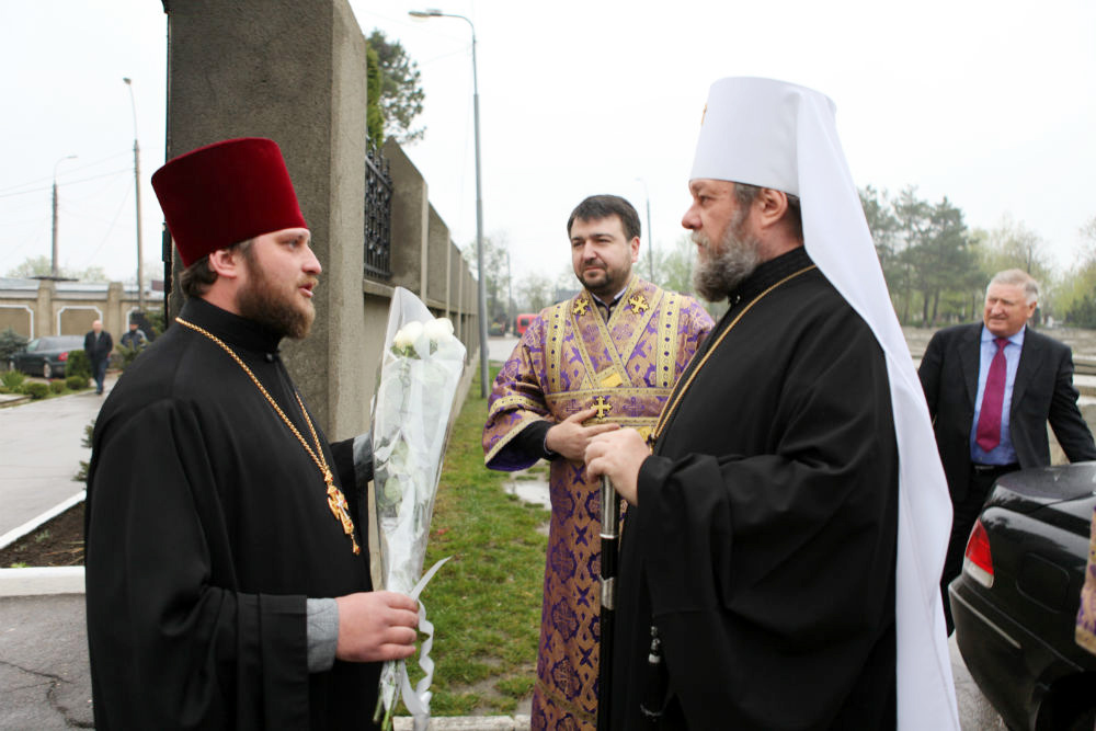 Его Высокопреосвященству сослужили: секретарь Митрополии митр. прот. Вадим Кейбаш, игумен Успенского Цыганештского мужского монастыря архим. Иринарх (Костру), благочинный церквей Дрокиевского района митр. прот. Павел Вулуцэ и духовенство храма.