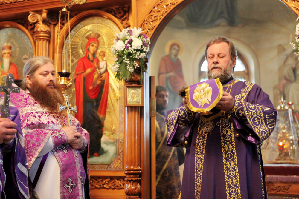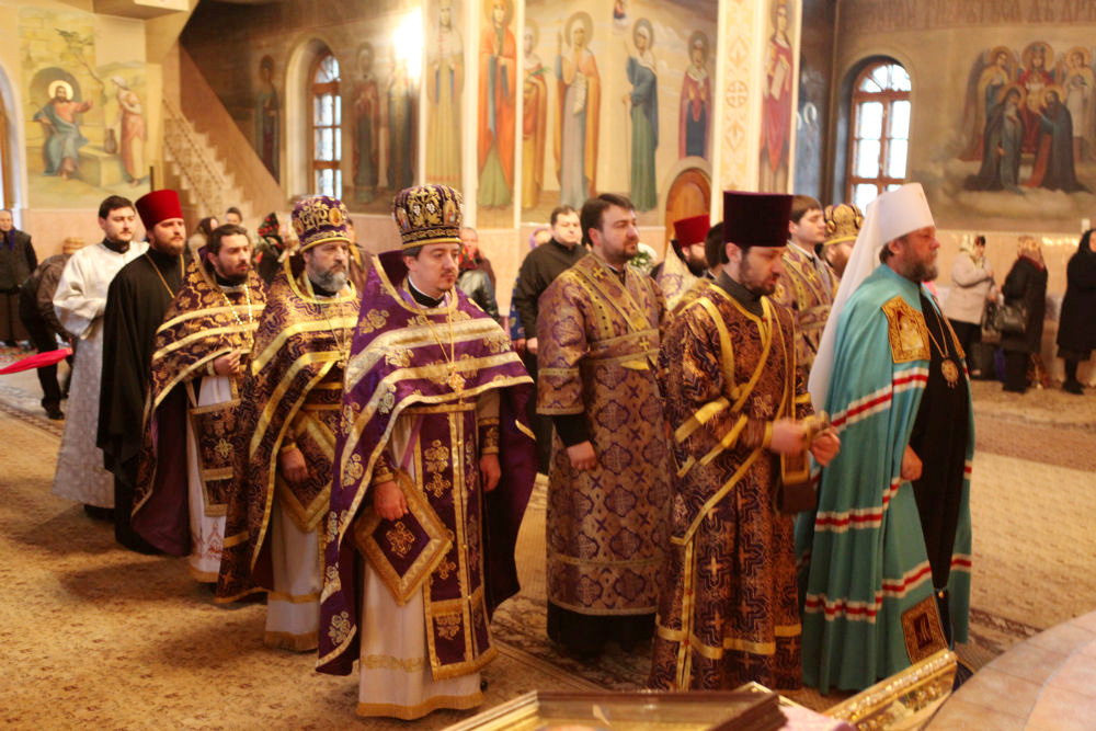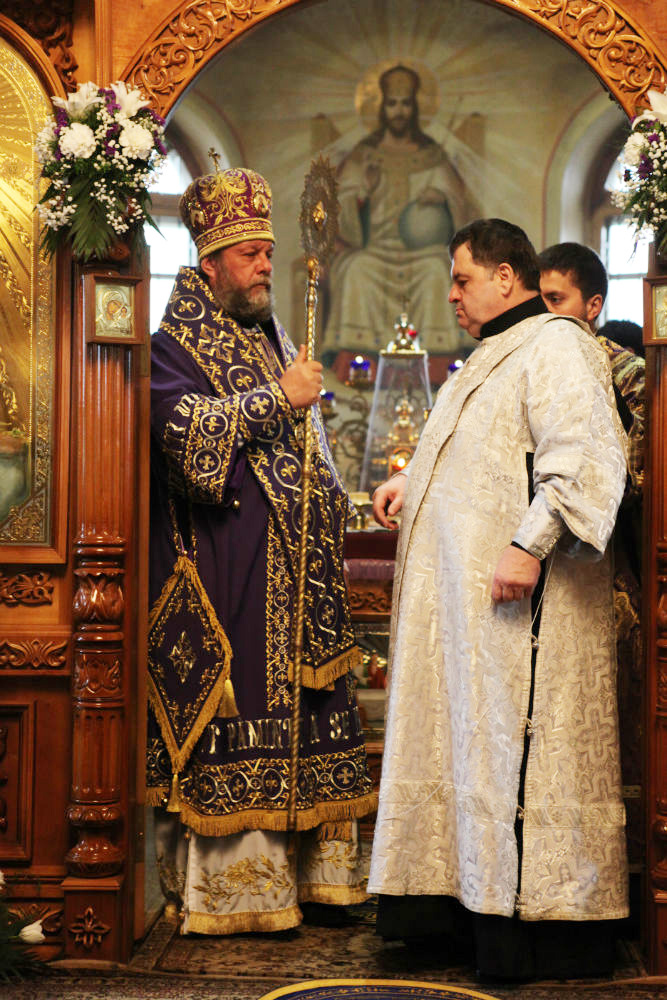 По окончании богослужения, архипастырь обратился к присутствующим с поучительным словом, после чего удостоил церковных орденов некоторых ктиторов и благотворителей храма, пожелав им помощи Божией в их богоугодном деле.