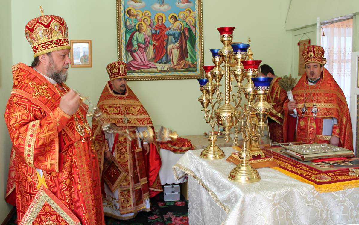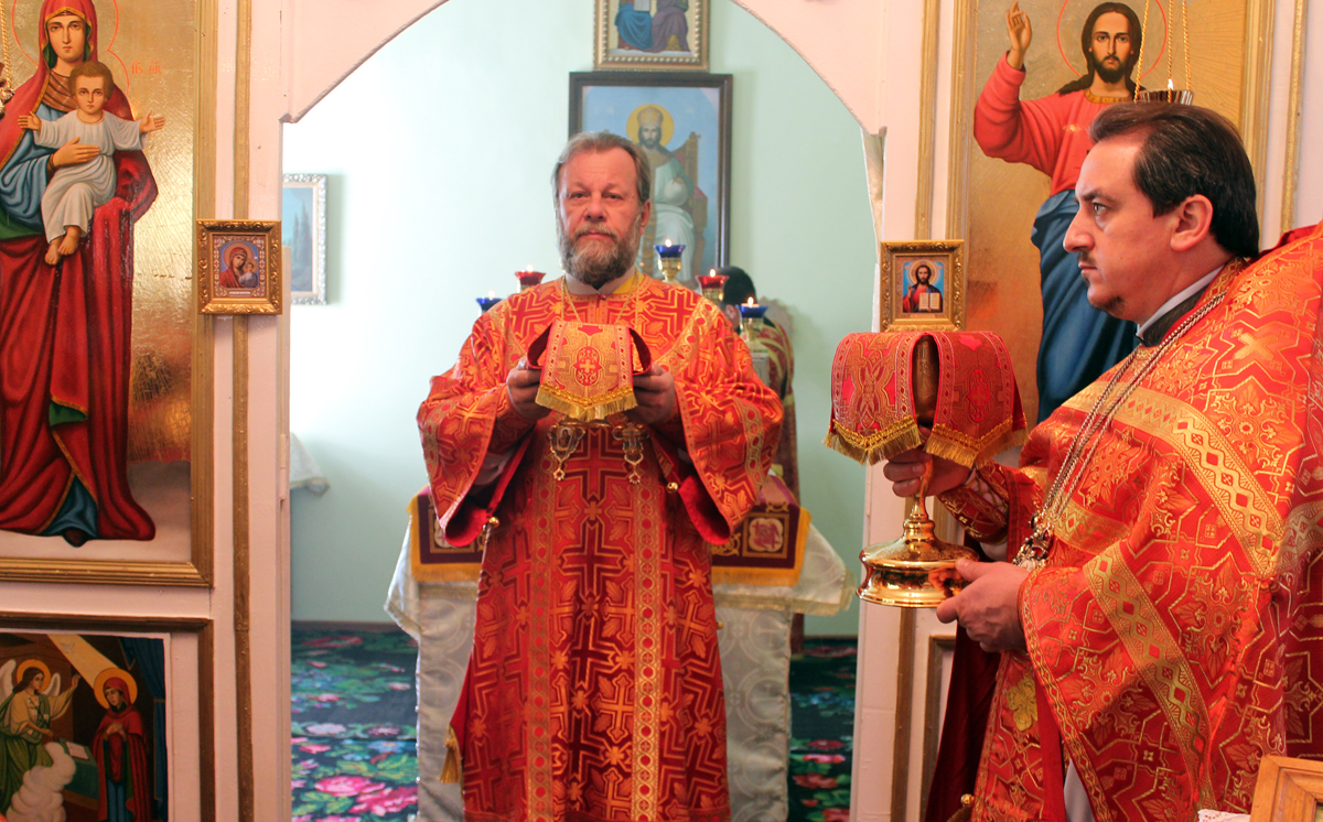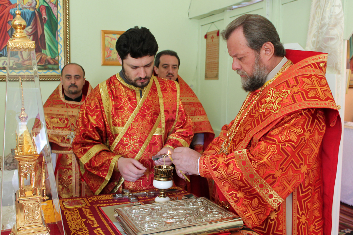 Сослужили Его Высокопреосвященству секретарь Митрополии митрофорный протоиерей Вадим Кейбаш и духовенство храма.