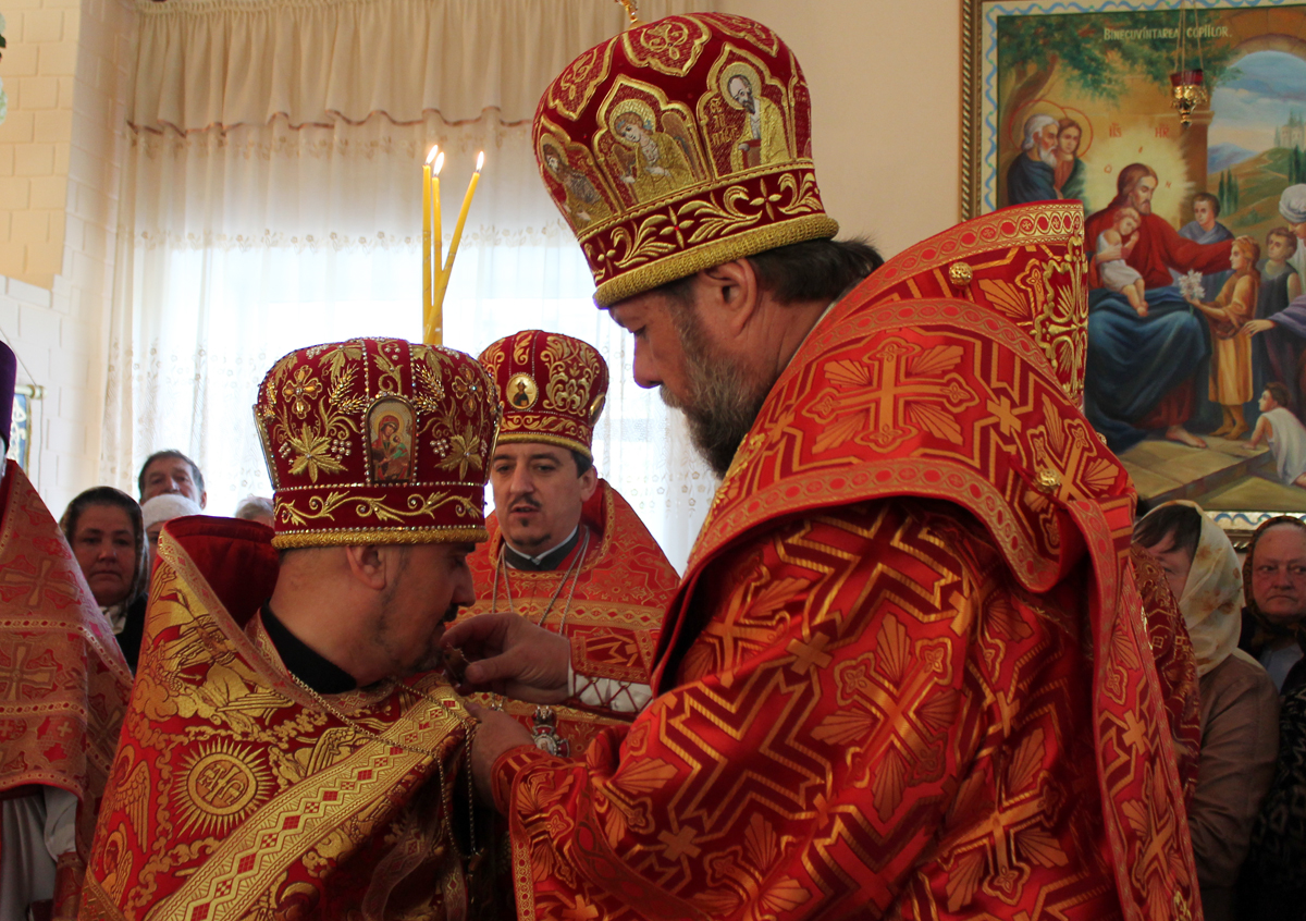 На малом входе, за доброе пастырское служение во славу Святой Православной Церкви, клирики храма прот. Вадим Лучик и иерей Геннадий Виеру были удостоены иерархом богослужебных наград.